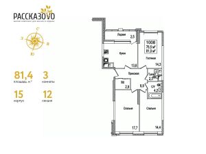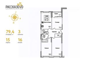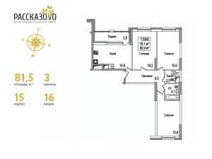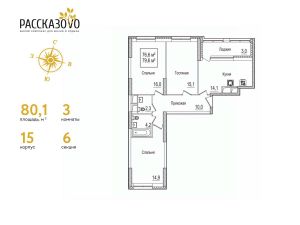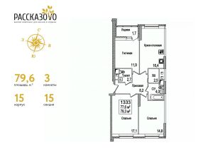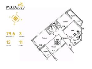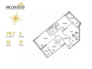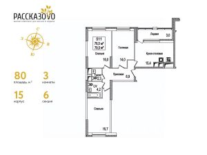 Продается 3-комнатная квартира в ЖК Рассказово на 11 этаже. Общая площадь квартиры составляет 80,2 кв.м. Квартира без отделки.Уникальность комплекса в его архитектуре все дома построены в стиле Москвы 30-х годов, создавая неповторимое ощущение присутствия романтики того времени.Роскошные входные группы, отделанные мрамором, с высотой потолков 4,5 м, белыми лепными карнизами и стойкой ресепшн с авторской отделкой создают атмосферу уюта, полностью отражая дух и воплощение уникальной архитектурной концепции 30-40 годов, являясь ее логическим продолжением.Преимущество локации заключается в благоприятной экологической обстановке с трех сторон комплекс окружен Ульяновским лесопарком и отсутствием промышленных предприятий, обеспечивая жителей чистым воздухом. До ближайшей станции метро ''Рассказовка'' всего 850 метров, а до центра можно доехать за 30 минут.Проект предполагает комплексное освоение территории, создание комфортной жилой застройки с развитой качественной инфраструктурой:- большое количество парковочных мест предусмотрены как закрытые подземные паркинги, так и крытые наземные парковки с дополнительно выделенными открытыми парковочными местами возле домов,- круглосуточно охраняемая территория, закрытая от посторонних для безопасности каждого жителя,- двор-парк без машин, где можно не переживать за играющих детей,- социальные объекты: своя поликлиника, детские сады и школы,- здоровая среда: воркаут - площадки, обустроенные места для занятий спортом на свежем воздухе, живописные места для утренних пробежек, велосипедные маршруты любой сложности,- благоустроенная набережная лесного озера для тихих прогулок или семейного отдыха,- коммерческие объекты действующие магазины, кафе и салоны красоты.Узнайте больше о комплексе приезжайте на просмотр, записавшись по телефону. Менеджер вас встретит, угостит вкусным кофе, проведет по территории и покажет квартиру.