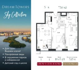 Рассрочка 0% от застройщика. Ключи в день покупки. ЖК Dream Towers — проект премиум-класса в окружении парков и набережной, с полностью готовой инфраструктурой для комфортной жизни и отдыха. Продаётся 3-квартира на 12 этаже 24-этажного дома (1 корпус).Общая площадь: 73.7 кв.м. Высота потолков от 3.15 м. Город-курорт на 100 Га в шаге от вашего дома:• пляжный комплекс Dream Beach Club,• парк аттракционов Остров Мечты,• 44 Га ландшафтных парков,• пешеходная набережная,• яхт-клуб,• Южный речной вокзал,• вейк-парк и многое другое. В Dream Towers предусмотрено все для комфортной жизни с семьей: • дизайнерские лобби с общественной гостиной, колясочной и лапомойками,• охраняемый благоустроенной двор только для жителей,• собственный десткий сад и школа прямо во дворе,• красивая архитектура зданий в стиле Ар-деко, • облицовка фасадов из натурального камня с архитектурной подсветкой, • широкоформатное остекление окон в пол для лучших видовых характеристик на парки и пойму Москвы-реки,• подземный паркинг,• клубный формат проживания,• эргономичные планировки от 40 до 162 м2,• высокие потолки от 3,15 до 4,1 м,• квартиры с террасами,• вся необходимая инфраструктура на первых этажах домов, а также в торговой частия тематического парка ''Остров Мечты'' (рестораны, кафе, супермаркет, магазины, салон красоты, йога-студия и многое другое). Центр рядом: 15 минут до Садового кольца на авто, 20 минут до Сити или Кремля. В 5 минутах прогулочным шагом — станция метро ''Технопарк''.
