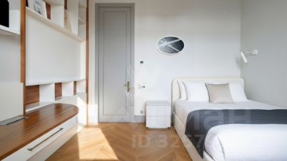 Лот 169681. Эксклюзив Vesco Realty. ЖК ''Малая Бронная 31/13'' - Уникальное предложение! Эксклюзивная квартира общей площадью 189 кв.м на Патриарших прудах с необычным балконом-террасой и видами на Пруд.Абсолютно новый, дорогой, эксклюзивный и качественный ремонт выполнен в современном стиле с элементами классики в светлых теплых оттенках с нежными голубыми деталями в декоре. Квартира полностью меблирована и оборудована.Гармония пространства и архитектурных решений основа роскошного интерьера. Огромное количество окон и очень необычная, абсолютно круглая комната - спальня, которую по периметру опоясывает балкон-терраса.Планировка: Кухня-гостиная: Благодаря продуманной планировке, кухня скрыта от глаз в гостиной, так как рабочая зона находится в нише, и дополнена красивым мраморным островом, переходящим в обеденный стол. Вход в спальню со скрытой дверью задекорирован деревянными панелями.Для визуального зонирования пространства гостиной от проходной зоны холла применили декоративные элементы: мрамор на стене с тв и мрамор за диваном.Прихожая: Входная зона выделена красивой латунной аркой с подсветками, акцентными зеркалами неправильной формы в скульптурных рамах из гипса. Многослойность материалов и форм создают wow эффект сразу когда вы входите в дом. При этом пространство только условно отделено от гостиной, что создает приватность и одновременно вы видите все пространство целиком с красивыми арочными окнами. Мастер спальня: Интерьер спальни роскошный и элегантный. Он соединяет несколько стилей классический, арт-деко и современный. Большое изголовье придает торжественности интерьеру в сочетании с бронзовыми зеркалами.Мастер ванная: подстать спальне: роскошная и утонченная. В арке за раковиной декоративная фреска с растительным рисунком. Плавные линии в интерьере создают уют.Мастер гардеробная.Спальня 2: Арочные окна в интерьере спальни подчеркивают закругленные углы в изголовье кровати, округлые формы мебели и светильников. Также как и в интерьерах остальных комнат основа цветовой гаммы пастельные теплые оттенки, натуральные текстуры и легкие голубы оттенки в текстиле.Гардеробная 2 - примыкает с спальне.Гостевой санузел с душевой кабинкой.Спальня 3: Основа любого дизайна архитектура помещения. Эта спальня необычной круглой формы, с множеством выступов, красивыми окнами с видом на пруд.В текстиле и декоре использовали сложный голубой оттенок. Оригинальная перегородка за кроватью с тропическим принтом в голубых тонах - это одновременно тренд и в то же время изюминка интерьера круглой спальни. Лепной декор на потолке подчеркивает классический стиль интерьера, но при этом в нем гармонично сочетается современная мебель. Ниши с подсветкой.Бывший Доходный дом Сидамона-Эристова 1911 года постройки, после капитального ремонта с заменой коммуникаций, ремонтом входной группы и новым лифтом. Парковка под шлагбаумом во дворе.Участник AREA - Ассоциации Агентств Элитной Недвижимости