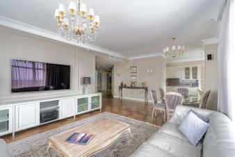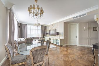 Просторная квартира с тремя спальнями в комплексе премиум-класса ''Триумф-Палас'' рядом с Чапаевским парком. Функциональная планировка включает гостиную с камином, кухню-столовую, две мастер-спальни, кабинет (идеально для большой семьи или для тех, кто работает из дома), три санузла, холл две террасы.Две террасы — огромное преимущество. Это дополнительное жилое пространство на свежем воздухе для отдыха, завтраков, приема гостей летом.Установлена система индивидуального кондиционирования. Высота потолков 3 метра. Окна ориентированы на две стороны, открываются виды на яблоневый сад и на благоустроенную территорию комплекса.В продаже есть машино-место, в стоимость не включено.Главное о доме. ''Триумф Палас'' — один из самых узнаваемых небоскрёбов Москвы в стиле сталинского ампира. Его фасады обращены к Чапаевскому парку, а панорамные окна выпускают внутрь кадры с зеленью и горизонтом Москва-Сити. Утро здесь можно встретить на пробежке по парку или с чашкой кофе на застеклённой лоджии. Днём — заглянуть в фитнес-клуб World Class с бассейном и спа прямо в комплексе, а вечером выбрать ужин в ресторане или паузу во внутреннем дворе у фонтана. Камерные лобби с мрамором и мягкой подсветкой создают ощущение частного клуба, а консьерж решает бытовые вопросы.Главное о локации. Дом стоит в Хорошёвском районе, всего в нескольких минутах от метро ''Сокол'' и ''Аэропарк''. По соседству расположены Чапаевский парк, Берёзовая роща и Ходынское поле — места для утренних пробежек и семейных прогулок. За покупками удобно ездить в ''Авиапарк'', а для детей рядом работают школы 1384 и 1287, а также детский сад 574. Дорога до Белорусского вокзала занимает 12 минут, откуда уходит аэроэкспресс в Шереметьево, а в центр можно добраться по Ленинградскому проспекту за 15 минут.Комментарий эксперта. Меня зовут Олеся Телегина — брокер компании Whitewill. Я отвечаю за продажу этого лота. Свяжитесь со мной, чтобы получить расширенную презентацию, больше фотографий или договориться о просмотре. Могу провести экскурсию по локации и познакомить вас с этим домом.ID 289 204.