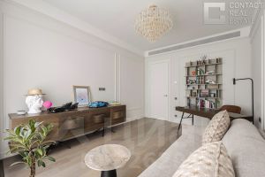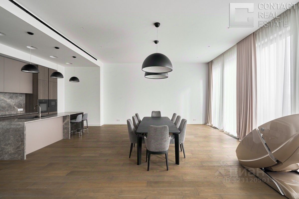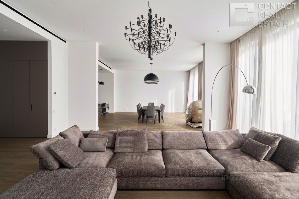 id:15429. Эксклюзивное предложение - 5-комнатная квартира площадью 162 м в новом премиальном жилом комплексе Lucky на Пресне. Квартира полностью готова к проживанию, её планировка сочетает комфорт и высокий стандарт качества жизни, а стильный интерьер выполнен по индивидуальному дизайн-проекту с учётом всех современных тенденций. Планировка включает: кухню-гостиную со столовой зоной, идеально подходящую как для семейных ужинов, так и для приёма гостей, просторную главную спальню с ванной комнатой и гардеробной, две детские спальни с собственными ванными комнатами и гардеробными, гостевой санузел и постирочную зону, удобную прихожую. Особенность этой квартиры - высокие потолки 3,2 метра и панорамные окна с французскими балконами, благодаря которым помещение наполняется мягким естественным светом. Квартира расположена на удобном 9 этаже, окна выходят на две стороны: во внутренний двор и на улицу Костикова, обеспечивая тишину и уединение. Интерьер выполнен в стиле современной классики с новой дизайнерской отделкой. В комнатах установлена качественная мебель известных итальянских брендов: Minotti, Poltrona Frau, Pianca. Полы выложены массивом дуба и мрамором. Итальянская кухня Dada с каменной столешницей оборудована современной бытовой техникой Neff. В ванных комнатах установлена премиальная сантехника Villeroy&Boch.