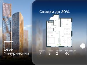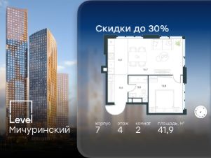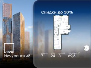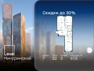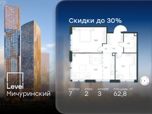 5-к, Левел Мичуринский ЖК, 3 Показать на карте