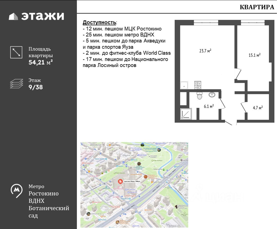 Номер в базе: 10818391. Вашему вниманию предлагается жилая 3-комнатная квартира в пешей доступности до станции метро ''ВДНХ''. Квартира жилая, высота потолков — 3 метра, подходит как для жизни, так и под сдачу в аренду! Звоните прямо сейчас, записывайтесь на просмотр! Помогу одобрить ипотеку по ставке 12,99% годовых! О КВАРТИРЕ: - Площадь квартиры по выписке из ЕГРН 67,4 м2, - Тёплая квартира с удобной планировкой, - В квартире есть балкон, - Раздельный санузел, - Высота потолков 3 м, О ЛОКАЦИИ: - Уютный район со сложившейся инфраструктурой. Рядом с домом есть продуктовые магазины, аптеки, детский сад, школа, поликлиника, пункты выдачи и другие различные сервисы для жизни, - В пешей доступности от дома расположен парк Ростокинский акведук для тихого и активного отдыха, - До Садового кольца 15 минут, Для Покупателей агентства ''ЭТАЖИ'': 1) финансовые гарантии на 25 000 000 рублей на 3 года (а также 1 000 000 по уже выплаченным % по ипотеке), 2) юридическое сопровождение и гарантия безопасной сделки, Код пользователя: 183998