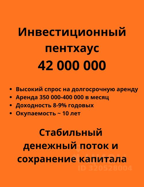 Апартаменты по проекту от европейского дизайнера. Высота потолков 3,5 метра. Большая кухня - гостиная, две спальни, гардеробная и два санузла. Апартаметы оборудованы современной техникой и всем необходимым для проживания. Отдельная входная группа с персональным доступом только для жильцов. Абсолютная приватность. Охраняемая территория 24/7 Ресепшен который работает 24/7 В апартаментах умная система хранения вещей, шкафы незаметные в дизайне - очень много встроенных шкафов. В гостиной зоне встроен биокамин. В апартаментах очень широкий видовой подоконник. Планировка апартаментов позволяет варьировать пространство как спальню-гостиную или как просторную кухню, с большим панорамным окном. Профессиональная автономная система вентиляции воздуха, которая обеспечивает уровень углекислого газа на уровне лесного воздуха, в каждой комнате. Апартаменты очень солнечные, в них много света за счет панорамного окна, даже в пасмурные дни. Наличие опции подземного/наземного паркинга в здании Спортивный зал на этаже. Горячая вода 12 месяцев в году, без отключения на летний период Окна выходят на тихую улицу, что обеспечивает возможность спать с открытым окном даже ночью - очень тихо. В соседнем здании расположен ТЦ, со всеми необходимыми бытовыми средствами, продуктами, химчисткой, барбершопом. Рядом находится Вкусвилл и Магнолия 24 часа, аптеки. До Даниловского рынка 7 минут на машине, до Парка Горького 10 минут на машине, до Красной площади 15 минут на машине. Выезд из апартаментов сразу на Набережную. До аэропорта 40 минут. Удобная система городского транспорта. Три кофейни на первом этаже, в здании. В соседнем здании частный Детский сад. Апартаменты идеально подходят для проживания, а также для званных ужинов и других мероприятий по бизнесу. Прекрасный арендный бизнес, с высокой доходностью. Дополнительно при необходимости дадим контакты двух хороших домработниц, которые отлично знают апартаменты и как за ними ухаживать.