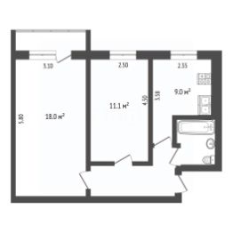 • Наибольшая площадь: 54 м²