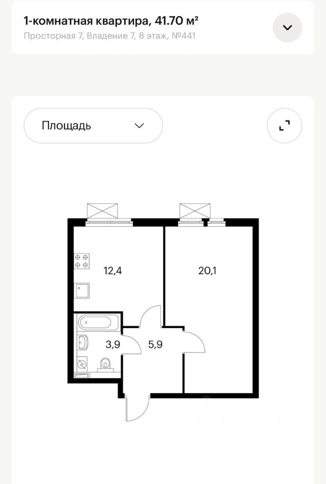 41 м² · Этаж 8 из 32