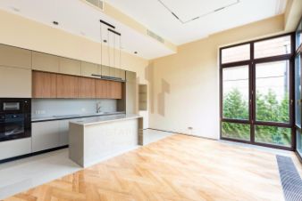 Апартаменты площадью 127,6 кв. м расположены на территории eco-luxury резиденций River Residences.Архитектурный облик комплекса разработан знаменитым архитектором Сергеем Чобаном. Все резиденции выполнены в едином стиле с фасадами из натурального камня, добываемого в Португалии. Художественные решения фасадов вдохновлены близостью к воде и пластикой академических гребных лодок, скользящих по Москве-реке.В River Residences большое внимание уделено энергосберегающим технологиям: широко применяется вакуумная изоляция. Система вентиляции с рекуперацией воздуха и сохранением естественной влажности формирует в помещениях комфортный микроклимат. Впервые на российском рынке были применены энергоэффективные окна четвёртого поколения от австрийской компании Internorm.Каждый юнит в клубном поселке имеет выход во двор или к реке, либо располагает собственным участком на берегу.Комплекс оборудован подземным паркингом на 93 машино-места с зарядными устройствами для электромобилей и бесшумными гидравлическими лифтами, ведущими непосредственно в резиденции.Все резиденции находятся под круглосуточной профессиональной охраной. Доступ на территорию строго регламентирован. Серебряный бор — одно из самых живописных мест в Москве.На территории площадью 330 га расположены парки и прогулочные зоны, Бездонное озеро, три официально разрешённых для купания пляжа с инфраструктурой, зонами отдыха, шезлонгами и спортплощадками, эко-тропы для пробежек и прогулок.На острове находятся девять спортивных площадок с турниками, брусьями, шведскими стенками и тренажёрами. Площадки открыты круглый год и расположены недалеко от воды, а в парке ''Ветеран'' и у спасательной станции ''Татарово'' оборудован ''Спортгородок СССР''. Также в парке есть теннисный корт и столы для пинг-понга.Комфортно провести время за ужином или романтическим завтраком можно в ресторанах и кафе, которые предлагают гостям европейскую и русскую кухню: рестораны ''Поместье-Парк'', ''Сосны'' и ''Дом 43''.