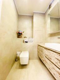 Арт. 93996513 Просторная квартира с дизайнерским ремонтом площадью 120 м² включает в себя шикарную кухню с фасадами из каменного шпона, 35м² со встроенной техникой и изящным винным шкафом Teka, две уединенные спальни — одна из них укомплектована гардеробной и личной лоджией, уютный совмещенный санузел, отдельную прачечную со стиральной машинкой и отдельной машинкой для сушки белья и внушительную зону отдыха.Эта распашная планировка сочетает в себе потрясающую кухню-гостиную с уютной лоджией и современными акцентами в виде винного шкафа и зелёных инсталляций. Панорамные окна, обращенные на восток и запад, наполняют комнаты солнечным светом и обеспечивают перманентный приток свежего воздуха в пространство.Ремонт выполнен с применением передовых инженерных решений и высококачественных отделочных материалов. Кухня-гостиная поражает масштабами, каменной столешницей и фурнитурой Blum. Стеклянный фартук, двойной холодильник Liebherr, индукционная плита SCHOTT CERAN, микроволновая печь и духовой шкаф Teka выдают владельца с чувством вкуса, наличие посудомоечной машинки обеспечивает дополнительное удобство, а обеденный стол из массива дуба привносит тепло и атмосферу роскоши.Тёплый керамогранитный пол, встроенные конвекторы Qtherm Varmann, уютные потолки из гипсокартона и декоративные стены создают гармонию интерьера. Многообразие сценариев освещения и зелёная стена из мха придают стильный акцент.Коридор грамотно оформлен: скрытый щиток с автоматами ABB, а сантехника от Jacob Delafon гарантирует комфорт. Входная сейфовая дверь с отделкой дерево (шпон) с биометрическим замком по отпечатку пальца, кодом и картой, 10-дюймовый монитор домофона с видеорегистрацией CTV-M4102FHD обеспечивает безопасность и спокойствие.О ЖИЛОМ КОМПЛЕКСЕТатьянин Парк - хорошо обустроенный жилой комплекс комфорт-класса с развитой инфраструктурой и транспортной доступностью. ЖК с низкой плотностью застройки.Станция метро Говорово в 10 минутах пешком. Удобный выезд на Боровское шоссе, МКАД, Мичуринский проспект.На территории ЖК есть школа 1000 (221 место в рейтинге среди более чем 1500 школ Москвы) и детский садНа первых этажах в ЖК расположены: супермаркеты, кафе и рестораны, пекарни. медцентры, салоны красоты, аптеки, пункты маркетплейсов и многое другое.Для отдыха и прогулок есть благоустроенный Заводской пруд, пешеходный бульвар. Во дворе каждого дома обустроены детские площадки, также есть площадки для тренировок и занятий воркаутом.ЛОКАЦИЯ И ИНФРАСТРУКТУРАЖК расположен рядом с красивым парком Горовский лес. На территории парка находятся детские игровые площадки, проложены велосипедные и прогулочные дорожки, а зимой открываются лыжные маршруты, есть оборудованные зоны для пикника.В 1,5 км находится одна из лучших в Москве и области лесопарковых зон - Мещерский парк. На территории парка находятся детские игровые площадки, футбольное поле, проложены велосипедные и прогулочные дорожки, а зимой открываются лыжные маршруты. На территории лесопарка находи