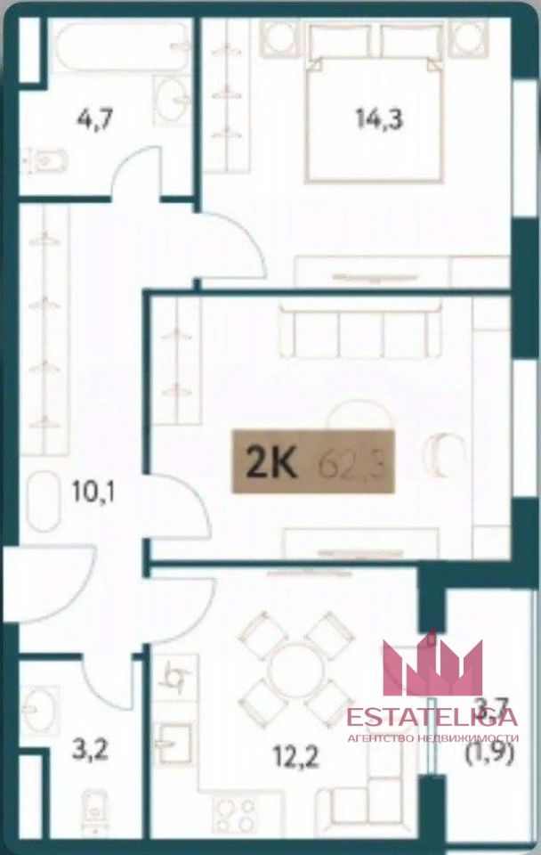 62 м² · Этаж 8 из 15
