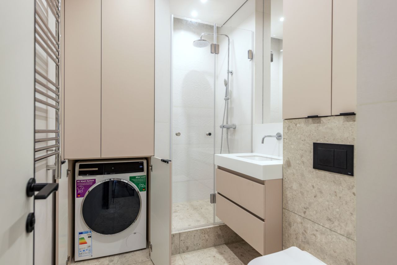 Двухкомнатная квартира (евро-3) площадью 52,2 кв.м реализована с нуля дизайнерским агентством с использованием высокачественных-премиум материалов. Квартира выполнена в современном стиле и светлых тонах, что располагает к покою и уюту в доме. Проект создан и реализован для себя. Планировка: светлая и просторная кухня-гостиная, два сан. узла, две спальни, одна из которых с панорамным угловым окном и видом во двор. Произведена полная замена системы отопления по всей квартире (разводка) на трубы REHAU. При входе в квартиру, в сан.тех.шкафу установлен проточный водонагреватель, магистральные фильтра на воду, система протечек воды Neptun (подключается к системе умный дом-яндекс). В зоне керамогранита установлен теплый пол с регулировкой в 4 зонах (2 отдельные зоны на кухне гостиной, 1 в ванной комнате и 1 в туалетной комнате). Датчики теплого пола установлены в один ряд с выключателями. Кухонная мебель изготовлена в компании Кухонный Двор, столешница и кухонный фартук выполнена из искусственного камня. Вся кухонная техника встроена. Установлен измельчитель бытовых отходов Omoikiri, установлен фильтр для воды с обратным осмосом Omoikiri. В спальне панно над кроватью и шкаф выполнены под заказ НАТУРАЛЬНЫЙ шпон американского ореха. Вся мебель дизайнерская, выполнена под заказ. Квартира очень тихая, сделана шумоизоляция пола и потолка во всей квартире, дополнительная шумоизоляция стен в спальнях. Установлены системы кондиционирования в каждой комнате отдельный кондиционер со своим блоком. Двери Sofia, инженерная доска на полу, освещение с множеством сценариев света, фурнитурой везде BLUM и Hettich, стены идеально покрашены. Зеркало в прихожей выполнено под заказ имеет подсветку. Высота чистовых потолков 290 см. В квартире проложены закладные под камеры (видеонаблюдение) и антенну ТВ. Квартира полностью готова для проживания. Очень теплая, светлая. Соседи также очень тихие и порядочные, никогда не доставляли неудобств. Уникальное предложение! Один собственник, покупали у Застройщика. Особенности района: до метро Спартак 5 мин. пешком, прекрасная экология, отсутствие старого жилого фонда, набережная Москвы-реки в 3 мин от подъезда, 2 школы ( 727 и 58), 2 детских сада от этих же школ, большое количество детских кружков, огромный спортивный кластер района: Чкалов Арена, теннисный комплекс на 36 кортов, фитнес-центр с бассейном Crocus Fitness - всё в шаговой доступности, открыты магазины, кафе и рестораны. На полуострове реализована вся городская инфраструктура необходимая для комфортной жизни. Дом 2022 года постройки, в связи с чем все ваши соседи уже закончили ремонты, а дом уже дал усадку и не повредит вашему ремонту. ЖК Holland Park - современный жилой комплекс с закрытой территорией, где реализована система- двор без машин. Малоэтажная секция с минимальным количеством соседей, что не дает нагрузку на лифт, в доме имеется подземный паркинг.