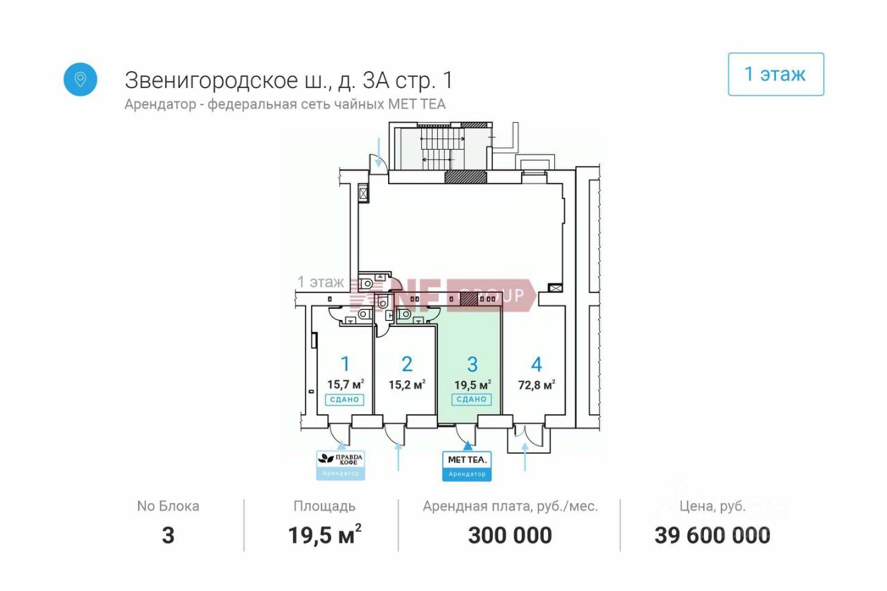 Лот: 36045. Помещение свободного назначения формата Street Retail в ЦАО Москвы. 5 минут пешком до станции метро улица 1905 года. Первая линия домов. Выезд на Звенигородское шоссе. Плотный жилой массив. Рядом остановка общественного транспорта. Арендатор: Федеральная сеть чайных ''MET TEA''. МАП: 300 000 руб.