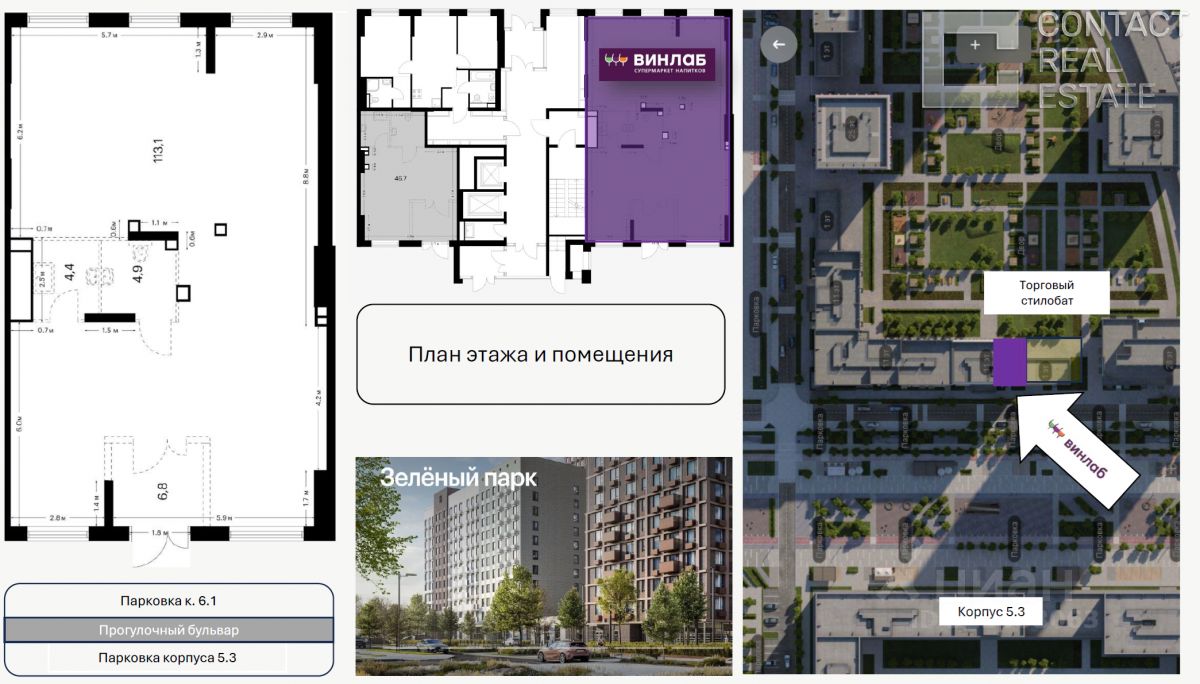 На продажу предлагается готовый арендный бизнес с арендатором. Помещение площадью 129,2 кв.м, находится на первой линии домов, в ЖК ''Зеленый парк'', интенсивный пешеходный и автомобильный трафик вдоль помещения. Витринные окна по фасаду, парковка перед помещением, высота потолков - 4 м. Арендатор: Заключен ДДА с ''Винлаб''. МАП - 360 000 рублей.С 4 по 6 мес МАП - 90 000 руб.С 7 по 12 мес МАП - 180 000 руб.С 13 по 15 мес МАП - 270 000 руб.с 16 мес 360 000 руб.Ключи до 1 сентября 2027г. Окупаемость 9,5 лет, доходность 10,5 % Все центральные коммуникации, электрическая мощность 25 кВт. [Лот #24294]