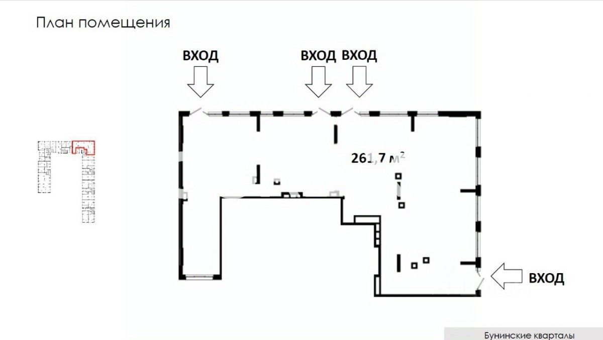 Продажа универсального торгового помещения в ЖК Бунинские кварталы 16 корпусов, 5 862 квартиры Важно! продажа от собственника Адрес: г. Москва, п. Сосенское, пр. Куприна, корпус 9.1 Площадь: 261,7 м2 Застройщик: А101 Вид договора: ДДУ Ввод в эксплуатацию: 4 кв. 2025 г. Расстояние от метро: м. Потапово - 18 мин (пешком) м. Новомосковская - 5 мин (на авто) Электрическая мощность: 52 кВт Высота потолка: 4м Продажа ГАБ с арендатором МАГНИТ Стоимость покупки: 88 000 000 руб. Стоимость М2: 336 263 ? Окупаемость: 9,6 лет 9,3 лет Арендатор: Магнит Вид договора: ДАБВ МАП: 785 100 ? Годовой арендный поток: 9 421 200 ? Преимущества: - Угловое помещение с 4 входами - Первая линия домов - Наличие парковки - Место для размещения рекламы - высоки пешеходный трафик - единственный супермаркет с алко лицензией НДС включен Почему стоит обратиться именно к нам? - Самая большая и актуальная база недвижимости: проанализируем рынок и поможем с выбором идеально подходящего торгового помещения именно для вашей компании. - Окажем консультацию и содействие на всех этапах: от подбора помещения до подготовки документов и официального оформления сделки. - Проводим показы в удобное для вас время, можем организовать виртуальный тур. - НИКАКИХ СКРЫТЫХ ПЛАТЕЖЕЙ И КОМИССИЙ! Звоните и мы оперативно организуем показ и ответим на все интересующие Вас Номер объекта: #1/538418/20317