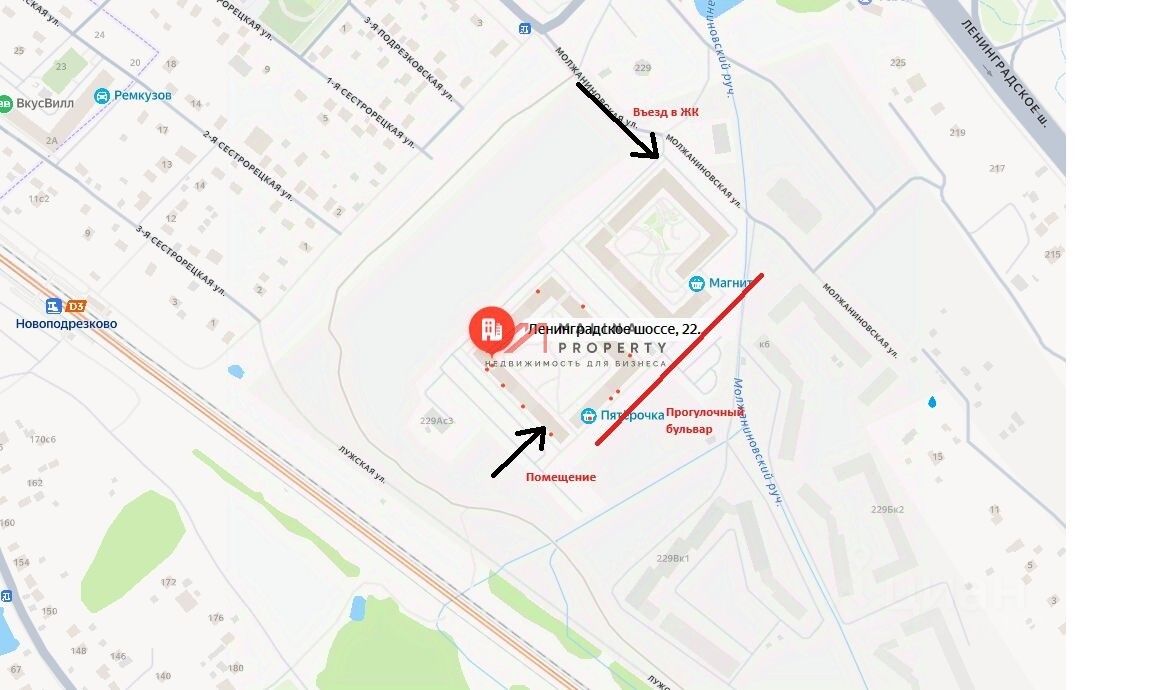 Готовый арендный бизнес Арендаторы Инвитро (медицинские анализы) и Яндекс Маркет Отлично просматривается со всех автомобильных пешеходных маршрутов Напротив входа в помещение расположен наземный переход Вблизи станция Зеленоград-Крюково (5 минут пешком) Первый этаж, один вход с общим тамбуром - далее у каждого арендатора свой блок Месячный арендный поток совокупно 222000 руб, к/у компенсируют арендаторы, индексация 5% В собственности физлица, готово к продаже Лот 138-102867