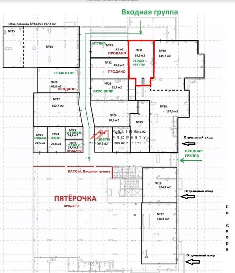 Предложение на продажу 36477. Предлагается на продажу торговое помещение общей площадью 349.6 м2. Объект находится по адресу Малая Ботаническая улица, 3. . . Первая линия домов . Первый этаж жилого дома . Планировка свободная . 2 отдельных входа с фасада и запасной со двора . Большие витринные окна по фасаду . Электрическая мощность100 кВт . В собственности юр.лица . . Супермаркет Магнолия (магазин работает с 26 декабря 2024 г). ДА от 29.03.2024 г на 12 лет. МАП 7% от ТО, но не менее 700.000 р/мес. МАП за сентябрь 2025 составил 790.000 р. 100 кВт. Торговая недвижимость, Street Retail. 1 линия домов. Витрины. Место для рекламы. Проходное и проездное место. Арендный бизнес. Окупаемость: 10 лет. Доходность: 10.00%. Доходность: 10.00%. Присутствует арендатор: Магнолия. Срок договора: 12 лет. Без комиссии.