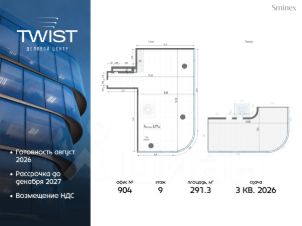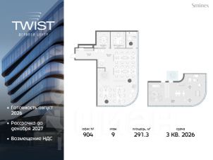 Готовность в августе 2026. Рассрочка до декабря 2027. Видовой офис площадью 291.3 кв.м. c собственной террасой на крыше.Эксклюзивное предложение на рынке офисной недвижимости Москвы. Просторную террасу площадью 91 кв.м можно использовать в качестве воркаут-зоны или пространства для работы и отдыха на открытом воздухе.Свободная планировка и минимальное количество несущих конструкций в офисе позволяют эффективно зонировать пространство. Панорамное остекление обеспечивает максимальное количество естественного освещения в дневное время и динамичный вид на город в вечернее. Наличие мокрой точки позволяет организовать в офисе кухню или дополнительные санузлы.Деловой центр Twist специально создан для размещения клиентских офисов. Он отличается исключительной транспортной доступностью: расположен прямо у станции метро ''Савёловская'', непосредственно у ТТК.Это прогрессивный деловой центр с безбарьерной системой доступа, которая сделала для клиентов проход к офисам быстрым, простым и комфортным. Новый дружелюбный стандарт безопасности здания освобождает от турникетов и необходимости оформлять пропуск.В Twist создана насыщенная инфраструктура для неформального общения с клиентами. Twist расположен на перекрёстке крупных дорог и виден со всех сторон — здание привлекает взгляды и заметно издалека. В 2023 году Twist получил престижную Архитектурную премию Москвы как лучший деловой центр.Twist небольшой и уютный. В нём всего 56 офисных лотов и девять этажей. В Twist широкий выбор офисов, которые производят впечатление на клиентов: от 50 кв. м до целых этажей разной площади, включая офисы со своими террасами.Премиальный деловой центр обладает самыми прогрессивными и полными системами комфорта. О резидентах и здании заботится Служба комфорта Smineх, которая предлагает сервис уровня 5-звёздочных отелей и сохраняет изначальный облик и концепцию здания.Девелопер проекта — Sminex, перфекционисты Fine Development. Компания обладает 24-летним опытом строительства жилой и коммерческой недвижимости, создаёт комфортную и престижную среду. В 2022 году Sminex приобрёл девелопера ''Интеко'', в 2024 году — Ingrad.