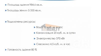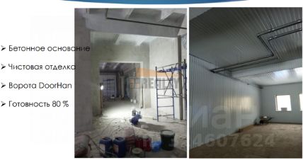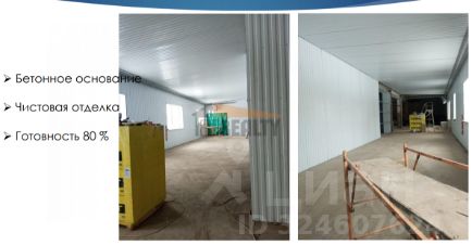 Здание под ключ площадью 1335 м2 на участке 0,8 Га (здание 15 на участке 7 согласно схеме)Стены: сендвич-панелиПолы: бетон, промышленныеОтопление: центральное, тепловой узел, регистрыВодопровод и канализацияПодключение 100 кВт входит в стоимость!Готовность к эксплуатации - 15.02.25Описание территории:Комплекс земельных участков с возможностью строить здания как с нуля (до 15 000 м2), так и под существующие свидетельства (от 200 до 2 575 м2).Основное направление: пищевое производство, складыОбщая площадь участков 26 Га ВРИ: приблизительно к июню 25 года категория земли станет ''земли промышленности'' (согласование ЦИОГВ получено).Инфраструктура: - 4 МВт электроэнергии, возможно увеличение до 8 МВт- на участке водопровод и канализация- муниципальная котельная станция- асфальтированные проезды- охраняемый КПП на въезде