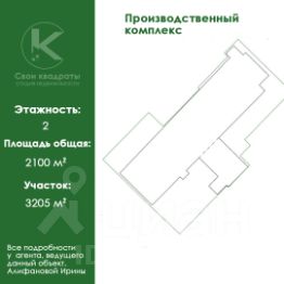 Продается производственный комплекс в 30 км от МКАДОбщая информация:* Площадь комплекса: 2100 м²* Площадь земельного участка: 3205 м²* Категория земель: земли сельхозназначения* Вид разрешенного использования (ВРИ): под производственным центромОписание объектов:1. Производственный цех/склад: • Площадь: 1800 м² • Этажность: 1 этаж • Высота потолков: 4 м • Подходит для хранения и производства, возможность организации различных производственных процессов.2. Административное здание: • Площадь: 300 м² • Этажность: 2 этажа • Включает офисные помещения, общежитие, столовую и санузел. • Удобное расположение офисов для работы сотрудников и клиентов.Инфраструктура и коммуникации:* Коммуникации: • Вода • Центральная канализация • Электричество (125 кВт) • Интернет • Отопление (печное)* Закрытая территория площадью 1000 м², огороженная забором, обеспечивает безопасность и приватность.* Удобный подъезд для грузового транспорта, что обеспечивает легкость логистики и доставки.Преимущества:* Выгодное расположение в 30 км от МКАД, что обеспечивает быстрый доступ к столице и основным транспортным магистралям.* Возможность использования как для производственных нужд, так и для организации офисной деятельности.* Развитая инфраструктура и наличие всех необходимых коммуникаций.Цена и условия продажи: По запросу. Возможен торг. Для получения дополнительной информации и организации просмотра, пожалуйста, свяжитесь с нами!