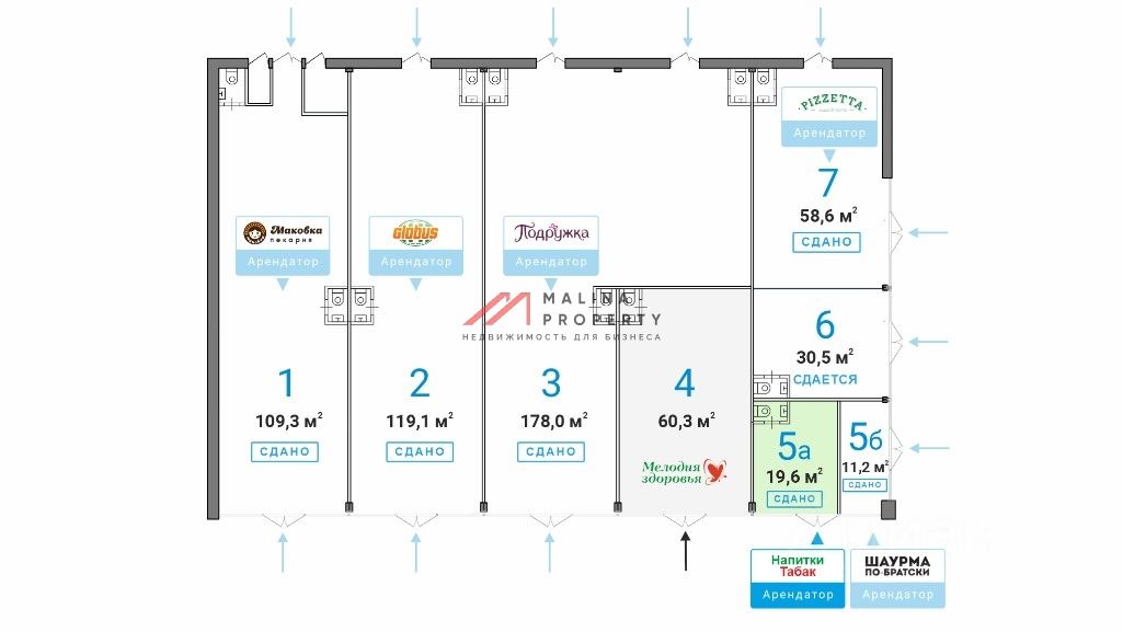 Продажа торгового помещения 109,3 м2 с арендатором федеральная сеть кафе-пекарен ''Маковка''на ул. Тушинская, д. 24с15 (одна минута от метро Тушинская). Первый этажже. Планировка открытая, отдельный вход, помещение с ремонтом, витринное остекление, есть место для размещения рекламы. Электрическая мощность по запросу. Помещение располагается у метро и МЦД Тушинская, а также у большой промзоны, что обеспечивает сверхинтенсивный пешеходный трафик. В двух минутах автобусная остановка. Возле здания парковка. Арендатор: федеральная сеть кафе-пекарен ''Маковка'', договор на 11 месяцев, арендная ставка 826 875 рублей в месяц, окупаемость 10 лет. Стоимость продажи 99 225 000 рублей. Без комиссии.