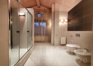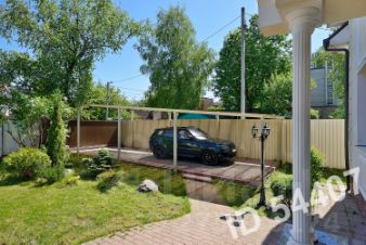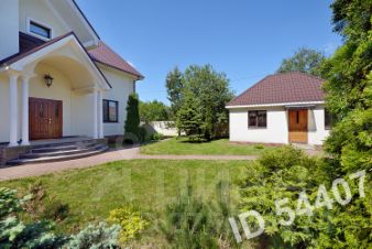 Дом в хорошем состоянии, подойдет для семьи с 2-3 детьми или как инвестпроект под аренду: кирпич, окна дерево, тёплый пол и подоконники мрамор, потолки 3,5 метра, системы - охраны, пожаротушения, видеодомофон, тревожная кнопка, оптический интернет, спутниковое телевидение, городской телефон.1 этаж - гостиная камин, кухня холл и прихожая полы мрамор с подогревом, кабинет, сауна, душ, купель, тренажёрный зал (или зона отдыха), санузел, постирочная комната, подсобные помещения,2 этаж - 4 спальни, 4 санузла полы с подогревом, гардеробная, холл, круглый балкон хозяйская и соседняя спальни, 3 этаж - большое теплое чердачное помещение. Коммуникации:центральные вода и канализация, магистральный газ, свет, отопление газовый котел, скважина для резервной подачи воды или полива участка, система очистки и смягчения воды, напорный насос. Дом для персонал или гостевой:50 кв/м кирпич, гостиная, кухня, санузел, подсобное помещение, коридор, центральные вода, канализация, свет, газовое отопление от основного дома.Участок:откатные ворота, газон, система полива, ландшафтный дизайн, кусты, деревья, искусственный пруд, вокруг дома дренажная система отвода грунтовой и дождевой воды от дома на улицу в ливневку, парковка 2-3 автомобиля под навесом, несколько автомобилей за воротами, освещение на всей территории. Посёлок: тихий, в 15 минутах от Сити по платной дороге и с Рублево-Успенского шоссе, пруд, спортивные, детские и игровые площадки, проезд через поселок закрыт, въезд с пульта или по коду.Рядом: Москва река, школы, детские сады, торговый центр, магазины, рестораны, кафе, рынок, несколько новых парков для отдыха и занятий спортом.Возможен торг. Продаёт собственник.