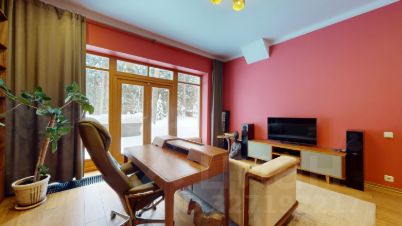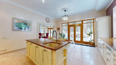 Коттеджный поселок Добрыня. Загородный дом площадью 365 м2 расположен на участке 15 соток, граничащим с живописным лесом. Авторский проект Ольги Синявской, московского художника и архитектора. Кирпичный фасад в современном стиле, отделанный штукатуркой с обширным пространством остекления, позволяющим наслаждаться естественным светом и лесными видами. Конструктивные работы велись в 2008-2009гг. Отделочные работы в 2010-2011гг. Планировка:Гостиная: Просторная гостиная с камином, панорамными окнами и выходом на террасу.Спальни: 5 уютных спален + мастер-спальня с гардеробной и санузлом.Первый уровень: прихожая (с выходом в гараж), холл (с тройным светом), гостиная, кухня-столовая, кабинет, гостевая(детская) спальня, санузел, постирочная.Второй уровень: мастер-спальня с балконом, кабинетом, гардеробной и санузлом,Дополнительно: 4 спальни, два санузла, балкон.Отапливаемый гараж на 2 машиноместа с прямым входом в дом, отдельное помещение для котельного оборудования,Чердачное помещение 80 кв. м.Мебель и техника: Многоступенчатая система очистки воды. Система приточно-вытяжной вентиляции,Кондиционер в большой спальне,В гостиной система домашнего кинотеатр (ресивер Danon, колонки Yamaha)Итальянская кухня, столешница из натурального мрамора (Индия),Стеллажная система в кабинете, сделанная по индивидуальному заказу.Мебель во всех помещениях может перейти к новым владельцам дома,Система видеонаблюдения и сигнализацииОтопление: Котел ViessmannСистема водяных теплых полов во всех помещениях с плиточным покрытием,Внутрипольные конвекторы отопления вдоль витринных окон, Электричество: (Мощность 12 кВт,),Водоснабжение: Общая для всего поселка скважина,Канализация: Общие очистные сооружения для всего поселка,Интернет и ТВ: Yonet, НТВ+. Выводы для интернета в кабинете и детской-игровой, ТВ в гостиной, кабинете, некоторых спальнях на втором этаже. Участок и дополнительные постройкиОграждение: перед домом невысокое ограждение (ковка, бетон), остальной периметр сплошной деревянный забор с калиткой в лес,Дополнительные постройки: Гараж, отапливаемый с системой отвода стоков, оборудованный системой стеллажей для хранения, с дополнительным пространством для храненияБлагоустройство: Ландшафтные работы на участке выполнены профессиональным дизайнером ландшафтов Татьяной Сушко. Общая информация о поселкеКП Добрыня (6,6 га) сформирован в Одинцовском р-не МО. До объекта от МКАД примерно 20 км, если следовать по Минскому/Киевскому шТерритория КП Добрыня застроена жилыми объектами двух типов. Представлены как таунхаусы (от 250 кв.м.) со свободными планировочными решениями, так и индивидуальные коттеджи. К домовладениям подключены все магистрально-централизованные инженерные коммуникации: электромощности, водо-, газоснабжение, канализация и т.д. По контуру возведен защитный забор, работает КПП, ведется круглосуточная охранная деятельность.В самом поселке проложены главные дороги и второстепенные ответвления к участка