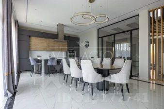 ID: 584295ЭКСКЛЮЗИВ BARNES INTERNATIONALСтильный одноэтажный дом в охраняемом коттеджном поселке Усово Плюс.Площадь дома составляет 402 кв м. Участок 8.5 соток.Грамотно продуманная планировка создает гармоничное пространство, где каждая деталь способствует удобству. Интерьер дома отличается безупречным стилем. Безрамное узкое остекление создает эффект визуального расширения пространства и увеличения светопроницаемости, что позволяет в любом уголке дома наслаждаться солнечным светом.В доме:Уютная гостинная с камином, в отделке которого использовался оникс с подсветкой.Современная обустроенная кухня с отдельной комнатой для хранения и выходом на террасу 3 спальни плюс 1 кабинет 3 сан узла, просторная постирочная и гардеробная при входе.Фасад дома выполнен из серого мрамора, что придает дому особую красоту и изысканность. В доме сделана приточно вытяжная вентиляция с рекуператором.Проведено канальное кондиционирование.Полы с подогревом по всему дому.Просторный гараж на 3м/м.Прямой выезд на платную дорогу через Красногорское Шоссе: 20-25 мин до Москва-сити.Вся инфраструктура Рублевки в радиусе 10 минут на машине, 5 мин на автомобиле до школы Президент,10 минут пешком до станции электрички.Номер объекта: #1/584295/14501