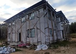 построен из Пеноблока с фундаментом железобетонной плитой в два этажа, огороженным участком. Первый этаж - кухня и гостиная, санузел с ванной, коридор. Второй этаж две изолированные комнаты. Используемые материалы :утеплитель минеральная вата, теплофлекс и пароизоляция, крыша мягкая кровля, внутренняя отделка обои, ламинат натяжные потолки, окна - пластиковые стеклопакеты,на полу ламинат, высота потолков 2,8, межкомнатные двери. Полы и перекрытия утеплены в соответствии с нормами. , полностью соответствует ТУ . Подключены и запущены: сантехническое оборудование - унитаз, ванна, теплый пол, раковина и т.д., отопительная система и осветительные приборы.