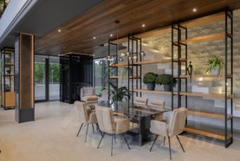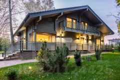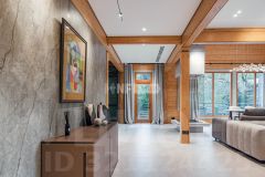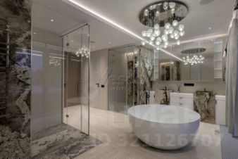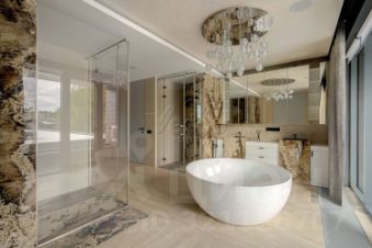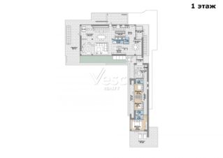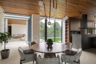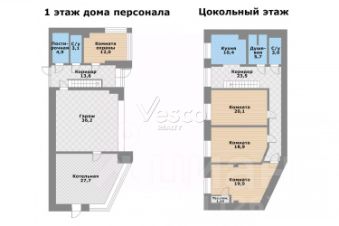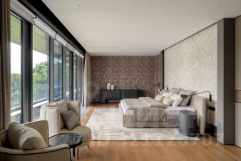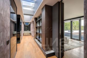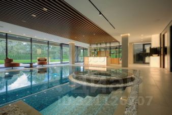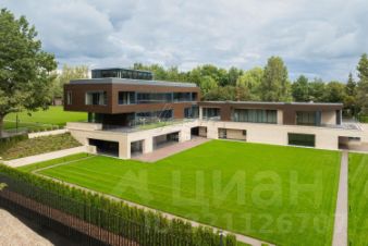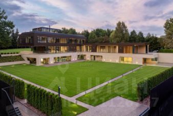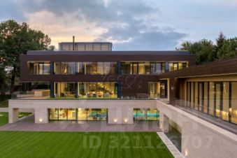 Лот 102904. Эксклюзив Vesco Realty. Коттеджный поселок ''Рублевские горки''Резиденция площадью 2150 кв.м на участке 62 сотки расположена в 24 км от МКАД по Рублево-Успенскому шоссе в КП Рублевские горки. Удобный выезд на платную трассу.В доме: 5 спален, 2 гостиные, 3 кухни, 2 столовые зоны, кабинет с панорамным видом на 4 стороны, спа-комплекс с бассейном, сауной и хаммамом, винный погреб, гараж на 4 м/м, постирочная, балконы и террасы (442 кв.м).Фишки: лифт обычный и продуктовый, бассейн 15 метров (глубина от 1,2 до 2,2 метров), модный камин с поворотным механизмом на 360 градусов, второй свет в гостиной 7,6 м, снегогенератор.Особенности проекта: продуманная логистика, 2 автономных заезда на участок (на каждом - свой пункт охраны), уникальный рельеф, 2 участка для спорта и отдыха, 5 уровней в доме, котельная - в отдельном строении, собственная калитка в строящийся парк, вековые дубы на уличной террасе.На участке также расположен двухэтажный дом персонала площадью 214 кв.м.УЧАСТОКДом стоит на рельефе, поэтому участок 62 сотки разделен на две части, примерно равные по площади - верхний уровень со входом на 1 этаж и нижний на -1 этаже с прямым доступом в спа-комплекс.С нижнего участка есть выход непосредственно в строящийся парк, который расположен на уровень ниже и не нарушает приватность жителей дома. На благоустроенной территории будут детские площадки, зоны отдыха, ландшафтное освещение, амфитеатр, терраса для занятий йогой, прогулочная тропа с деревянным настилом длиной более 1 км в одну сторону и даже искусственное озеро с пляжем. На верхнем уровне растут шикарные вековые дубы с пышными кронами. По периметру участков высажены туи и ели, оборудована зона барбекю и зона отдыха, система автополива, альпийская горка, подсветка дорожек. ПЛАНИРОВКИ-2 этаж:Винный погреб (25,2), лестница (25,5), с/у для персонала (5,6), постирочная (20,4).Технические помещения: электрощитовая (12,6), вент. камера (24,4),тех.помещение лифта (4,3), тех.помещение бассейна (13,1 + 38,4), коридор (90,2), подсобное помещение (1 + 6,2), лестницы (16,9 + 6).-1 этаж:Спа-комплекс: бассейн (188,9), сауна (6,6), хаммам (6,7), душевые (2,5 + 2,8), с/у (2,4), лестница (12,9), лифт, зона отдыха (73,4), терраса (159,3).Технические помещения: гараж (80,9), навес (33,9), комната охраны (18) с с/у (2,6), тепловой пункт (10,3).Помещение шеф-повара: техническая кухня (16,7), кладовая для продуктов (3,6), комната отдыха (17,3) с с/у (3,7), холл (10,3).1 этаж:Тамбур (12,3), холл (18,2), гардеробная (10,7), гостевой с/у (3,4), гостиная 1 (146,5), столовая (37,8), кухня парадная (30,4), техническая кухня (8,6), гостиная 2 (28,2+7,28), лифт, террасы (167,1).Детский блок: коридор (24,6), спальня 1 (15,7) с ванной (4), спальня 2 (15,7) с ванной (4,3) и балконом (18,2), спальня 3 (33,5) с ванной (4,3) и балконом (77,4).2 этаж:Мастер-блок: спальня (35,9) с балконом (15,3), ванной (25,3) c двумя с/у (2,3 + 2,3) и гардеробной (41,2), холл (14,7).Спальня 2 (33,9) с балконом (6), ванной (8,3) и гардеробной (9,9).Лестничный холл с зоной отдыха (102,1), лифт.3 этаж:Гостиная 3 (32), кабинет (17,7), с/у (3,2), лифт (6), терраса (300).Дом охраны (214,2 кв.м).Квартира персонала: 3 спальни (20,1 + 19,9 + 18,9), кухня (10,4), душевая (5,7), с/у (3,1), коридор (23,5).Комната охраны (12) с с/у (3,1).Технические помещения: котельная (27,7), постирочная (4,9), гараж (36,2), техническое помещение (1,2), коридор (13,6).ФАСАДТравертин, канадский кедр.Светопрозрачные конструкции и раздвижки Schco.Кровля эксплуатируемая, частично с озеленением.МАТЕРИАЛЫ И БРЕНДЫВ отделке используется дерево, крупноформатный исп