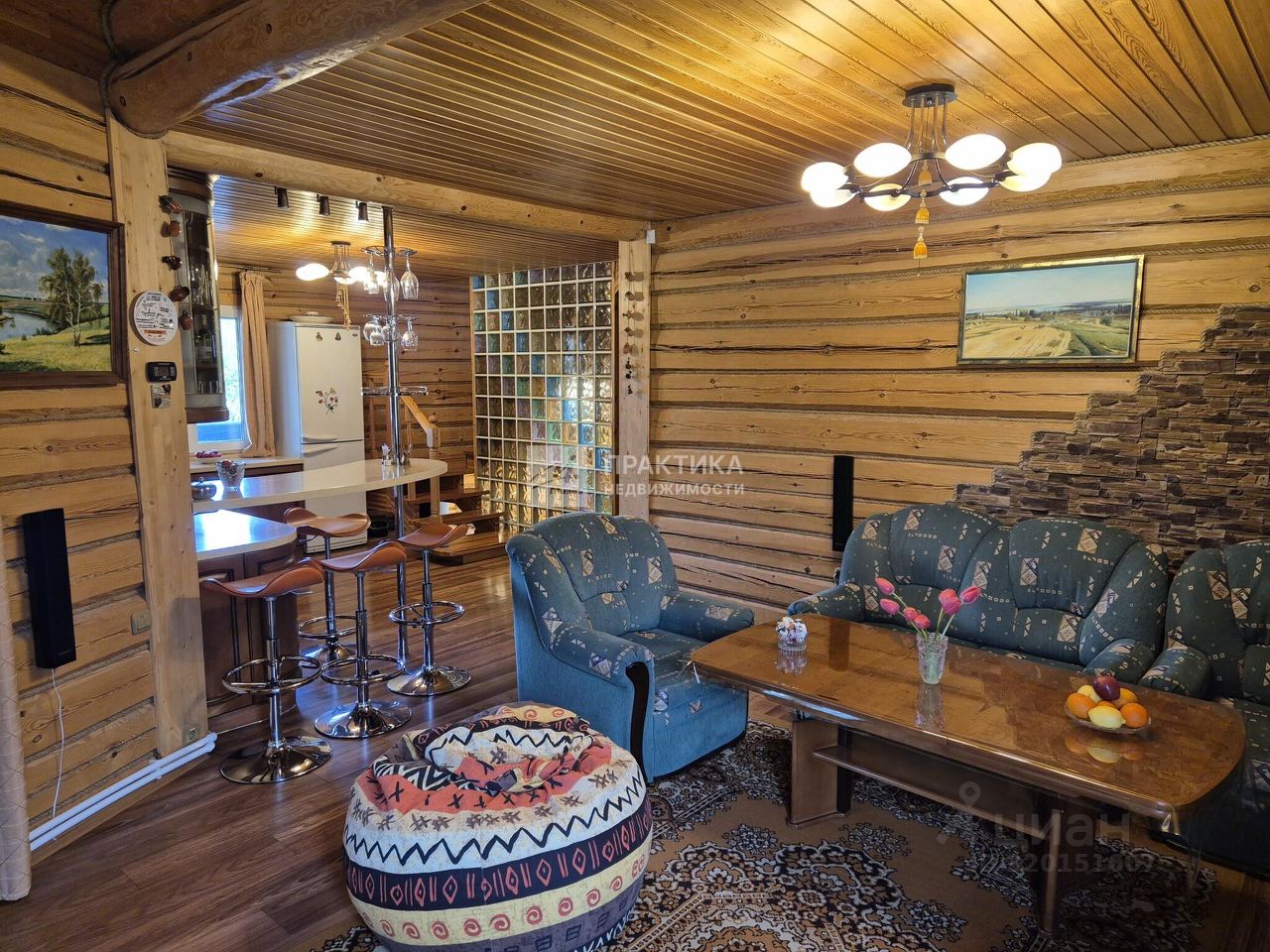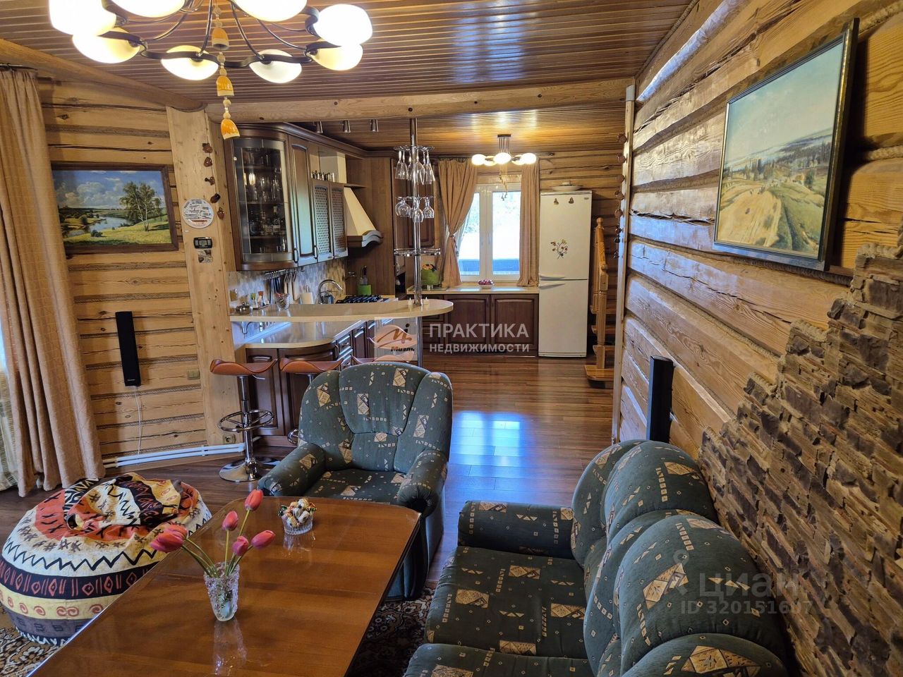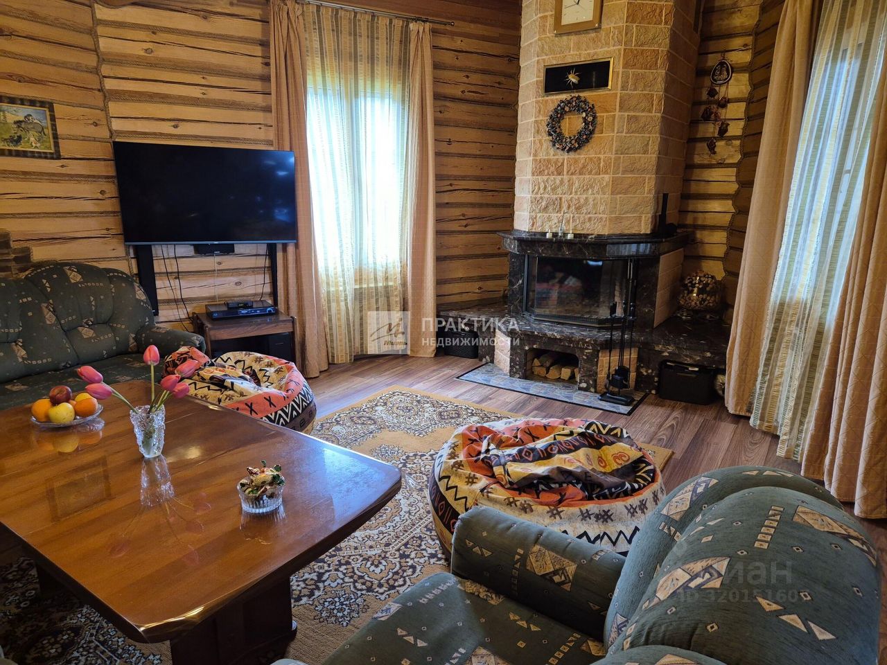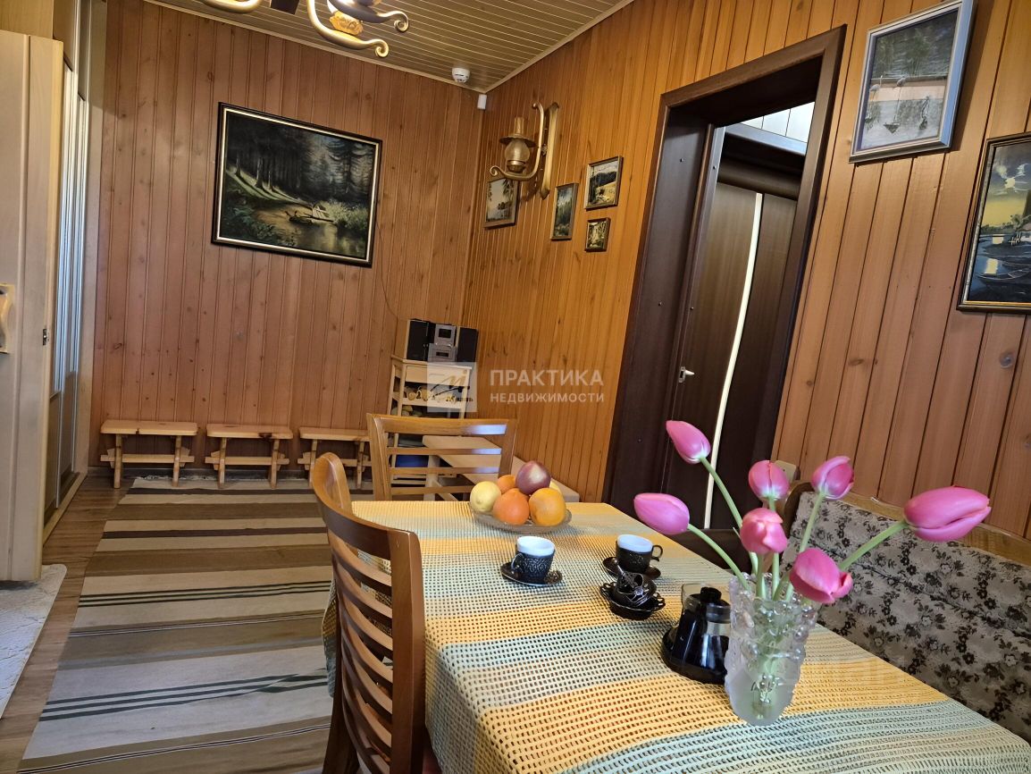 Код объекта: 1604917. Добротный бревенчатый дом 154 кв.м на участке 15 соток в Новой Москве с русской баней и гостевым домом в СНТ Поиск-1, рядом с посёлком Кувекино и Евсеево. Хорошее транспортное сообщение с Москвой - новая дорога, проспект Славского, соединяет Калужское и Симферопольское шоссе, автобусом 906, остановка в 5 минутах, можно доехать до Ватутинок или Троицка или до МЦД Астафьево, где развита вся необходимая инфраструктура. * Дом построен в 2009 году из рубленого бревна с протеской (не снят верхний защитный слой древесины) добротно, со вкусом и любовью. * На 1-м этаже гостиная объединена с кухней 40 кв. м в центре которой большой камин, отделанный мраморной плиткой. Здесь же на первом этаже комната отдыха 13м с парилкой 4м и душевой 4м, гостевой санузел, техническая комната. Вокруг дома большая угловая веранда 13м с прекрасным видом на участок, навес для 2-х машин + 1 гостевое место. * На 2-м этаже 3 уютные спальни 19м,14м,13м с мансардными окнами, и удобной ванной комнатой с окном, удобная лестница, есть чердак для хранения, крыша хорошо утеплена, кровля металло-черепица. * На участке искусственный пруд 8м*4м*2,5м с мостиком, создает уют и прекрасную атмосферу, выложен каучуковой пленкой. Водопад работает от насоса в противоположной части, который обогащает воду кислородом, что поддерживает её в хорошем состоянии. Поэтому в пруду водятся караси и растут нимфеи, кубышки, которые прекрасно переносят зиму за счет правильной глубины. Зона барбекю и костровая, где уютно посидеть вечером у огня. На участке порядка 40 туй, 5 видов можжевельников, голубая ель, 2 обычные ели, 2 дуба, 5 берез, 5 рододендронов разных видов, бордюры из самшита, лилейники разных видов, голубика, смородина красная и черная, виноград изабелла, малина, 5 яблонь, 3 из них колоновидные. * Коммуникации - магистральный газ, скважина - 76м, фильтр грубой очистки, дальше в расширительный бак 200 м3, баллон обогащения кислородом, фильтр обезжелезывания, емкость смягчения воды, фильтр тонкой очистки, для питьевой воды стоит отдельный фильтр под раковиной. На участке установлен Топаз на 5 точек, после прохождения очистки вода попадает в технический колодец, из которого может использоваться для полива, хороший естественный дренажа, так как участки находятся на возвышенности. * На 6 сотках находится каркасный доммастерская обложен кирпичом, внутри обшит вагонкой, покрыт шифером, отапливается электрическими обогревателями, для хранения садовой техники, сезонной мебели, велосипедов и т.д., хозблок и беседка. * Большие газоны позволяют играть в бадминтон, волейбол, крокет и боче. * Проведена юридическая экспертиза МИЭЛЬ, 2 собственника, без обременений, более 5 лет, свободная продажа,