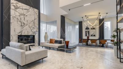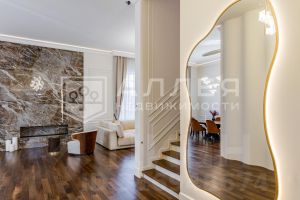 Лот: 1311501. Дом с отделкой 1341 кв.м на участке 30 cот. Кол-во спален: 6. Кол-во с/у: 7. Поселок ''Изумрудный век''. Рублево-Успенское шоссе, 15 км от МКАД. Без комиссии для покупателя.Цоколь: холл, котельная, домашний кинотеатр, тренажерный зал, с/у для персонала, подсобные и технические помещения,1 этаж: холл, кухня с выходом на террасу, гостевой с/у, столовая с выходом на террасу, гостиная с камином, бильярдная, SPA-зона: сауна, с/у, душевая, бассейн (6 м х 17 м),2 этаж: холл с выходом на балкон, кабинет, 3 мастер-спальни с гардеробными и ванной комнатой, гостевая комната с камином и с/у,Мансарда: холл, подсобное помещение, две мастер спальни с гардеробными и с/узлами.Трехэтажный дом 1 341 м² в поселке Изумрудный век в 15 км от МКАД по Рублево-Успенскому шоссе. Изысканный дом в классическом стиле находится на участке в 30 соток с высаженными декоративными деревьями— туи, ели, можжевельник, клены и дубы. В доме вы найдете 6 спален, холл, домашний кинотеатр, тренажерный зал, просторную кухню с выходом на террасу, элегантную столовую с панорамными окнами и выходом на террасу, гостиную с камином для приятных вечеров, бильярдную, кабинет, SPA-зону с сауной и роскошным бассейном, а также живописную мансарду. В доме завершена высококачественная отделка, в интерьере преобладают спокойные, светлые оттенки, использованы натуральные материалы.На участке в 30 соток выполнены ландшафтные работы. Предусмотрен гараж на три автомобиля, а на его втором этаже размещена уютная двухкомнатная квартира для персонала, полностью оборудованная для комфортного проживания.В современном охраняемом коттеджном поселке Изумрудный век жителям доступны детская площадка и теннисный корт. Проложены качественные асфальтовые дороги, устроена ливневая канализация, установлены парковые светильники.Дом окружен живописным участком площадью 0,30 га, на котором высажены декоративные деревья, туи, ели, можжевельник, клены, дубы. На участке расположен гараж на 3 автомобиля, на втором этаже гаража располагается двухкомнатная квартира для персонала со всеми удобствами.Современный охраняемый коттеджный поселок. Для удобства жителей и их гостей оборудована гостевая парковка. В поселке детская площадка и теннисный корт. Проложены качественные асфальтовые дороги, устроена ливневая канализация, установлены парковые светильники. Поселок полностью застроен.