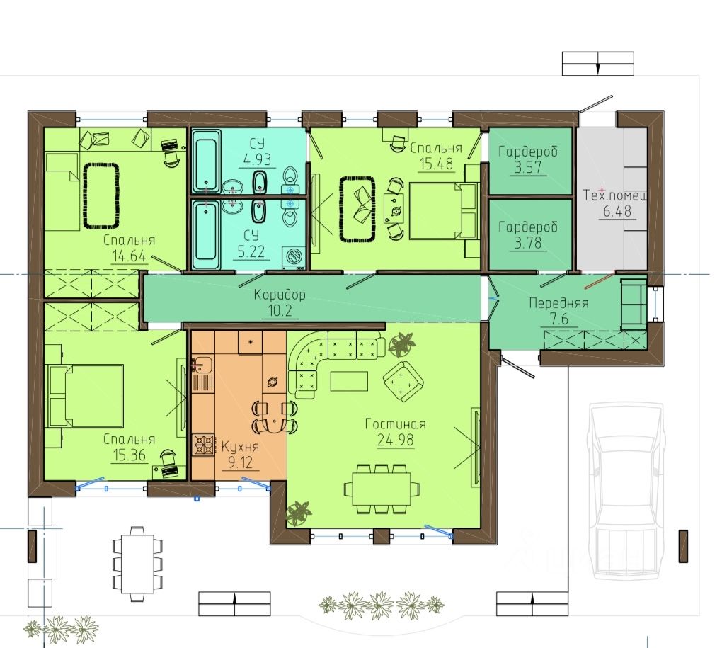 под семейную ипотеку не подходит, собственник физ лицо. Одноэтажный дом от застройщика с отделкой вайтбокс или ремонтом под ключ с центральными коммуникациями в охраняемом коттеджном посёлке. Дом построен на лесном участке 8 соток. Участок летом утопает в зелени, сохранили максимальное количество взрослых деревьев. (Берёзы, осины, дубы) -Фундамент плита. -Стены пеноблок. -Кровля мягкая черепица шинглас. -Окна 70 коттеджный профиль Veka. -Утепление кровли минвата. -Утепление фасада пенополистетол вспененный (пеноплекс). -Отделка фасада клинкерная плитка. (Не выцветает, не требует обновления, срок службы 50+ лет) -Все коммуникации центральные и заведены в дом. Пуск газа в феврале. Отопление на основе газового котла Navien. На всей площади дома проложены трубы водяного тёплого пола. В составе кровли сделан навес под один автомобиль и навес для террасы с выходом из кухни. Дом 150м2. Просторная кухня гостиная со вторым светом, 3 спальни, одна из спален огромная с собственным санузлом и гардеробной. Всего в доме 2 гардеробные, 2 санузла, есть отдельная котельная-постирочная. В гостевом санузле будет установлена сауна на 2-3 человека. Дом построен в охраняемом коттеджном посёлке Сатинские пруды, закрытая территория, солидные соседи, небольшие платежи (4500 руб в месяц, вода входит в платёж, электричество и газ по счётчикам оплачивается отдельно). Находится в отдалении от крупных шоссе, довольно тихое место, но в то же время быстрый удобный выезд на Варшавское, Калужское шоссе и ЦКАД. В пешей доступности Пятёрочка, Магнит, государственные школа и детский сад, аптека, почта, ПВЗ ВБ и Озон. До Подольска и Троицка можно добраться на автобусе. Возможно два варианта покупки: 1. С ремонтом вайтбокс (готов под чистовую отделку). Стены поштукатурены и подготовлены под поклейку обоев. Выполнена черновая электрика и инженерия, требуется только уложить напольное покрытие, плитку на стены, поклеить обои, натянуть потолки и пр. Фасад дома полностью готов. Участок не освоен, требуется выравнивание, посадка газона и пр. На данной стадии стоимость дома 23 000 000 и его можно приобрести уже сейчас (или после пуска газа в январе). 1. Полностью готовый дом в состоянии как на фото. Завершены все черновые и чистовые работы, участок выровнен, уложена брусчатка. Цена 26 500 000. В состоянии как на фото дом будет в середине марта. Таких домов мы построили более 10, покажем другие дома, познакомим с людьми, которые живут в них несколько лет. С агентами сотрудничаем при наличии клиента. Помощь в продаже не нужна. Документы готовы к сделке, никаких обременений и ограничений.