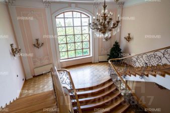 Лот 102904. Эксклюзив Vesco Realty. Коттеджный поселок ''Рублевские горки''Резиденция площадью 2150 кв.м на участке 62 сотки расположена в 24 км от МКАД по Рублево-Успенскому шоссе в КП Рублевские горки. Удобный выезд на платную трассу.В доме: 5 спален, 2 гостиные, 3 кухни, 2 столовые зоны, кабинет с панорамным видом на 4 стороны, спа-комплекс с бассейном, сауной и хаммамом, винный погреб, гараж на 4 м/м, постирочная, балконы и террасы (442 кв.м).Фишки: лифт обычный и продуктовый, бассейн 15 метров (глубина от 1,2 до 2,2 метров), модный камин с поворотным механизмом на 360 градусов, второй свет в гостиной 7,6 м, снегогенератор.Особенности проекта: продуманная логистика, 2 автономных заезда на участок (на каждом - свой пункт охраны), уникальный рельеф, 2 участка для спорта и отдыха, 5 уровней в доме, котельная - в отдельном строении, собственная калитка в строящийся парк, вековые дубы на уличной террасе.На участке также расположен двухэтажный дом персонала площадью 214 кв.м.УЧАСТОКДом стоит на рельефе, поэтому участок 62 сотки разделен на две части, примерно равные по площади - верхний уровень со входом на 1 этаж и нижний на -1 этаже с прямым доступом в спа-комплекс.С нижнего участка есть выход непосредственно в строящийся парк, который расположен на уровень ниже и не нарушает приватность жителей дома. На благоустроенной территории будут детские площадки, зоны отдыха, ландшафтное освещение, амфитеатр, терраса для занятий йогой, прогулочная тропа с деревянным настилом длиной более 1 км в одну сторону и даже искусственное озеро с пляжем. На верхнем уровне растут шикарные вековые дубы с пышными кронами. По периметру участков высажены туи и ели, оборудована зона барбекю и зона отдыха, система автополива, альпийская горка, подсветка дорожек. ПЛАНИРОВКИ-2 этаж:Винный погреб (25,2), лестница (25,5), с/у для персонала (5,6), постирочная (20,4).Технические помещения: электрощитовая (12,6), вент. камера (24,4),тех.помещение лифта (4,3), тех.помещение бассейна (13,1 + 38,4), коридор (90,2), подсобное помещение (1 + 6,2), лестницы (16,9 + 6).-1 этаж:Спа-комплекс: бассейн (188,9), сауна (6,6), хаммам (6,7), душевые (2,5 + 2,8), с/у (2,4), лестница (12,9), лифт, зона отдыха (73,4), терраса (159,3).Технические помещения: гараж (80,9), навес (33,9), комната охраны (18) с с/у (2,6), тепловой пункт (10,3).Помещение шеф-повара: техническая кухня (16,7), кладовая для продуктов (3,6), комната отдыха (17,3) с с/у (3,7), холл (10,3).1 этаж:Тамбур (12,3), холл (18,2), гардеробная (10,7), гостевой с/у (3,4), гостиная 1 (146,5), столовая (37,8), кухня парадная (30,4), техническая кухня (8,6), гостиная 2 (28,2+7,28), лифт, террасы (167,1).Детский блок: коридор (24,6), спальня 1 (15,7) с ванной (4), спальня 2 (15,7) с ванной (4,3) и балконом (18,2), спальня 3 (33,5) с ванной (4,3) и балконом (77,4).2 этаж:Мастер-блок: спальня (35,9) с балконом (15,3), ванной (25,3) c двумя с/у (2,3 + 2,3) и гардеробной (41,2), холл (14,7).Спальня 2 (33,9) с балконом (6), ванной (8,3) и гардеробной (9,9).Лестничный холл с зоной отдыха (102,1), лифт.3 этаж:Гостиная 3 (32), кабинет (17,7), с/у (3,2), лифт (6), терраса (300).Дом охраны (214,2 кв.м).Квартира персонала: 3 спальни (20,1 + 19,9 + 18,9), кухня (10,4), душевая (5,7), с/у (3,1), коридор (23,5).Комната охраны (12) с с/у (3,1).Технические помещения: котельная (27,7), постирочная (4,9), гараж (36,2), техническое помещение (1,2), коридор (13,6).ФАСАДТравертин, канадский кедр.Светопрозрачные конструкции и раздвижки Schco.Кровля эксплуатируемая, частично с озеленением.МАТЕРИАЛЫ И БРЕНДЫВ отделке используется дерево, крупноформатный исп