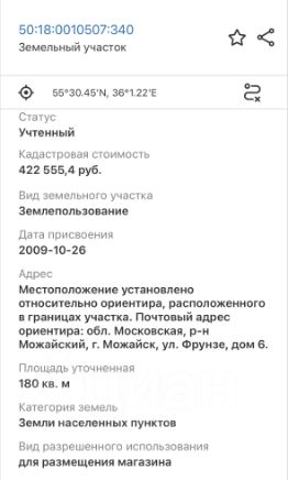 Продается нежилое, одноэтажное, отдельно стоящее помещение с собственным входом (торговое, магазин) со всеми центральными коммуникациями, на первой линии дороги, в окружении жилой застройки многоквартирных домов, в центре города по адресу: Можайск, ул. Фрунзе 6/1.Интенсивный пешеходный и автомобильный трафик.Площадь помещения 92 кв.м. кв.м, отдельный вход. Здание и земельный участок в собственности.? помещение расположено в отдельностоящем торговом здании,? Коммуникации: 30 кВт электроэнергии, центральный водопровод и канализация, отопление автономное газовое (в отопительный период составляет 4-5 тысяч), кондиционер, пожарная сигнализация, интернет, телефон.? имеется зона разгрузки/погрузки сзади магазина с пожарным выходом? расположение: в радиусе 150 метров расположены: администрация/дом культуры/отдел полиции/гостиница/центральная площадь и парк/отделение СБЕР и ВТБ, несколько кафеи тд? Планировка: просторный торговый зал 65.1 кв.м., кабинет 17.2 кв.м., тамбур 2 кв.м., санузел 1.9 кв.м., котельная 5.2 кв.м.? отдельный вход с первой линии дороги и тротуара, в соседнем помещение расположен супермаркет ''Бари Галуст''? качественный ремонт: окна ПВХ, плитка, хорошее освещение, здание утеплено и облицовано сайдингом, кровля - мягкая черепица, фундамент ленточный, материал стен кирпич.? проходное и проездное место, рядом остановка общественного транспорта и пешеходный переход? документы: здание и участок в собственности, межевание выполнено, помещение зарегистрировано, 1 взрослый собственник - физическое лицо, более 5 лет в собственности, полная сумма в ДКП.Категория земель: земли населенных пунктов, ВРИ - для размещения магазина, объект права - нежилое помещение магазина, назначение нежилое.Отличное место под продуктовый магазин, кафе, канцтовары, офис, банк, салон красоты, клинику, аптеку, пункт выдачи, ломбард и тд! В данном месте можно реализовать любой бизнес или сдавать в аренду.Просмотр в любой день по предварительной договоренности.