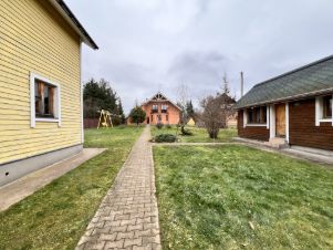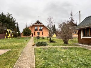 Номер в базе: 9796757. Кирпичный дом на ленточном фундаменте, крыша металлочерепица, пластиковые окна. Все коммуникации: магистральный газ, электричество 15 кВт, скважина, септик.Планировка:1 этаж: кухня, гостиная, столовая, спальня, зимний сад, душевая и санузел2 этаж: камин, большая комната с возможностью зонирования на 2 спальни, санузел3 этаж: две спальниПодвал: бойлерная и 3 помещения для хранения (мастерская, кладовые)На участке:Тёплый гараж на 2 автомобиля с мастерской2-этажная баня (2-й этаж жилой)Хозблок, теплица, колодецДекоративный пруд, взрослые туи, плодовые деревья, кустарникиОсобенности:24 сотки (4 участка по 6 соток), часть свободна для строительстваУгловое расположение, два въездаДвор с освещением и видеонаблюдениемЛокация:Круглогодичный подъезд через шлагбаум, освещение по посёлку, дружные соседи. Удобный выезд на Минское шоссе, чуть более 30 минут до МКАД (платный и бесплатный проезд).Код пользователя: 62944