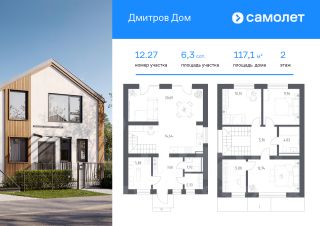 В продаже дом площадью 117,06 м2 на участке 6.28 от застройщика ''Самолет'' в загородном проекте ''Дмитров Дом''. Функциональная планировка, большие окна и высокие потолки. Дом без отделки. В базовую комплектацию включена металлическая входная дверь, двухкамерные стеклопакеты. Отсутствие межкомнатных перегородок позволит вам адаптировать пространство под себя. Все коммуникации заведены в дом: электричество, газ, канализация, водопровод и интернет. Участок благоустроен: газон, забор по периметру с калиткой и откатными воротами, подготовленное парковочное место для автомобиля. Предусмотрена ливневая канализация (ливневка), что защитит участок от подтоплений. Вы ощутите комфорт жизни в собственном доме и удобство городской инфраструктуры в окружении живописных пейзажей. На территории ''Дмитров Дом'' расположены: Административное здание (УК)Торговый центр и магазиныБанно-оздоровительный комплексДосуговый и детский центрыКоворкингШкола и детские садыПоликлиника Спортивный центрИгровые и спортивные площадки для взрослых и детей Водоем с собственной живописной набережнойКруглосуточная охрана и видеонаблюдение Расположение:60 минут до Москвы на автомобиле 1 час 20 минут на электропоезде от Савеловского вокзала 10 минут до центра г. Дмитрово Покупка по 214-ФЗ по ДДУ, что гарантирует надежность и прозрачность сделки.Выгодные варианты покупки:1. Семейная ипотека от 5,9%, ПВ от 20,1%2. Рассрочка на 2 года с первым взносом от 15%. Приглашаем Вас в офис продаж на презентацию проекта ежедневно с 10.00 до 20.00. Предварительная запись на визит по телефону.