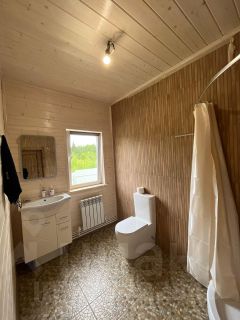 Продается уютный каркасный дом с баней в Коттеджном поселке Морозовский Уезд! 43 км от МКАД! Дом полностью обустроен и готов к заселению! Ни кто не жил! Строили для себя! Есть возможность уступить остаток по ипотеке под 7.3 % годовых. На первом этаже кухня гостиная 24 кв. м., спальня, санузел, бойлерная, коридор. Второй этаж: 3 спальни, две из которых с гардеробными, санузел. Теплый пол в коридоре и санузле на первом этаже. Кухня оборудована мебелью и техникой. В дом заведено электричество 30 кВт . В бойлерной: электрический котел, работает на 6 кВТ или 12 кВТ. Водонагреватель на 100 литров. .Фундамент: железобетонные сваи 5 метров, пол брус. Утеплитель: стены 150 мл., потолок 200 мл. Скважина 43 метра, септик Кессон плюс колодец для перелива 3 кольца. Баня с верандой, общая площадь 30 кв. м., фундамент на сваях. В бане полы из лиственницы, потолок и стены липа, душ с водонагревателем. На территории участка хозяйственная постройка, зона барбекю, дорожки уложены гравием, ровный участок, откатные ворота. Удачное расположение в поселке, участок окружен лесным массивом, для прогулок, рядом с домом вход в лес. В Коттеджном поселке закрытая территория, въезд по пропускам, круглосуточная охрана, чистка дорог, вывоз мусора, облагораживание территории. Инфраструктура на 5+: 1 км от КП: сельский магазин и магазин фермерских продуктов. В 3 км находится Новое Гришино, в котором есть сетевые магазины, детский сад, школа, фитнес-центр, аптека, продовольственный и строительный рынки. В 6 км находится село Подосинки, в котором имеются фельдшерско-акушерский пункт, детский сад 44, средняя общеобразовательная школа, так же две частные школы и частный детский сад, Почта, Сбербанк, супермаркеты. Так же в районе картодром ''Маяк'', горнолыжный курорт ''Сорочаны'', клуб Леонида Тягачева, спортивный парк ''Волен'' и ''Степаново'', спортивный парк при ДЮСШ олимпийского резерва ''Икша'', ресторан для горнолыжников и бордистов ''Ильинские холмы'', стрельбище ''Лисья нора'', парк внедорожного экстрима ''Land Rover Experience'', парк экстремального отдыха ''X-Land'', гольф клуб ''Целеево''. Удобная транспортная доступность: Дмитровское шоссе, ЦКАД, Ярославское шоссе. В 10 км. Жд. Станция Морозки.