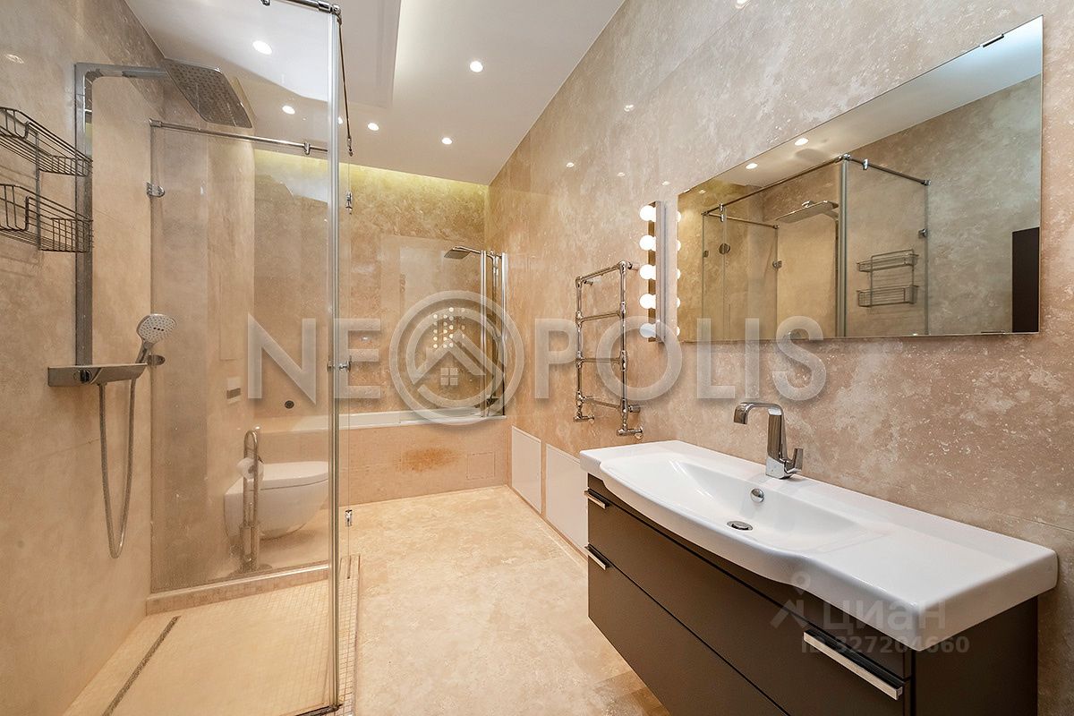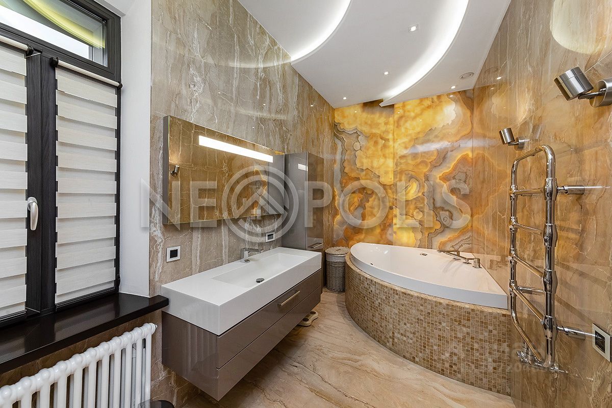 Лот 102180. Эксклюзив Vesco Realty. Коттеджный поселок ''Променад'' Поселок с единой архитектурной концепцией застройки, все центральные коммуникации, собственный современный фитнес клуб, большая парковая прогулочная территория, удобная освещаемая подъездная дорога, профессиональная охрана. Основной дом 389 кв.м и гостевой дом с бассейном 197,3 кв.м в элитном клубном поселке в 12 км от МКАД на Киевском шоссе. Уютный и светлый дом в отличном состоянии (один из самых новых домов в поселке), дополнительных вложений не требует, можно сразу заехать и жить. Красивейший и ухоженный участок 15 соток ИЖС, расположен на тихой улице (для двух домов), на возвышенности в центральной части поселка, рядом с парковой прогулочной территорией на реке и фитнес клубом. Приватный участок, соседние дома расположены на достаточном расстоянии, поэтому из всех окон (даже на первом этаже) открываются живописные виды. В основном доме: гостиная-столовая с мраморным камином и выходом на террасу, кухня с кладовой комнатой, 6 спален, кабинет и жилая комната свободного назначения, 4,5 с/у, функциональная постирочная, высокие потолки - 3,5 м на первом этаже и 3,2 м на втором. Благодаря разумной планировке, большим панорамным окнам и спокойным цветовым решениям, в доме много воздуха, света, удобного пространства для жизни и отдыха каждого члена семьи. В гостевом доме: бассейн и русская баня на дровах, кухня-гостиная с выходом на террасу, гостевой с/у, квартира для персонала (большая кухня-столовая, две спальни, с/у с душем). ПЛАНИРОВКА Основной дом 1 этаж: гостиная-столовая (56,2) с выходом на террасу (11,1), кухня (10,8) с кладовой (4), кабинет (21,2), постирочная с душем (12,1), прихожая (5,6), холл (17,2), с/у (2,4). 2 этаж: спальня 1 (24,6), спальня 2 (22,4), спальня 3 (20,4), спальня 4 (18,8), гардеробная (5), 2 ванные комнаты (4,7 и 9,4), холл (22,8). Мансарда: спальня 5 (25), спальня 6 (24,5), спальня 7 (18,6), бильярдная (48,1), ванная комната (3,3) Гостевой дом 1 этаж: кухня-гостиная (24,6) с выходом на террасу (20,1), бассейн (27,6), русская баня на дровах (8,6), подсобное помещение (11,6), кладовая (8,5), тамбур (2,4), с/у (1,9). Мансарда: кухня-гостиная (29,8), 2 комнаты (25,3 и 22,8), с/у (6,2). МАТЕРИАЛЫ СТРОИТЕЛЬСТВА И ОТДЕЛКИ Дом кирпичный с утеплением Rockwool (стена толщиной 60 см), фундамент плита и колонны монолит ж/б, облицовка искусственный камень White Hills, лиственница, штукатурка, кровля утепленная, покрытие Технониколь, водостоки и желоба с обогревом. В доме выполнена качественная стильная отделка по дизайн проекту европейского дизайнера материалами европейских производителей: мрамор, дерево, керамогранит. Санузлы отделаны итальянской плиткой с декором, стены английские обои, декоративная штукатурка, краска, полы бельгийский ламинат. Сантехника итальянская, кондиционеры Panasonic, полы с подогревом на первом этаже и в санузлах, отопление: радиаторы Arbonia, внутрипольные конвекторы, отделка камина и подоконники из мрамора, постирочная оборудована техникой Miele, мансардные окна VELUX, окна KBE. Кухня: Империя кухни с итальянскими фасадами из массива и столешницей из искусственного камня. Мебель бренда MIASSMOBILI, гостиная изготовлена с использованием массива ценных пород дерева. Спальня: Moonzana - мебель ручной работы из дуба. Ткани и люстры из хрусталя привезены из Турции. КОММУНИКАЦИИ Водоснабжение и канализация центральные + своя скважина, в доме дополнительная система водоподготовки. Газ - магистр