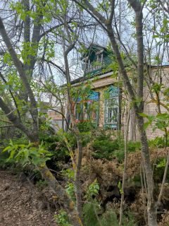 На участке расположен жилой деревянный дом, гараж, баня.В доме есть кирпичная печь голландка, сан/узел на улице. Электричество по одной фазе 5 кВт. По границе участка проходит газовая труба. Есть стыковочный колодец для подключения дома к центральному газоснабжению. Дом построен в 1932 году согласно домовой книге.Куплен в 1988-м. В 1990-х проведен капитальный ремонт. Заменены все подгнившие венцы, подведен бетонный фундамент.В доме одна большая теплая комната, плюс летняя спальня и летняя кухня. В 2000 году была пристроена летняя веранда и построен гараж. Каркас гаража сделан,