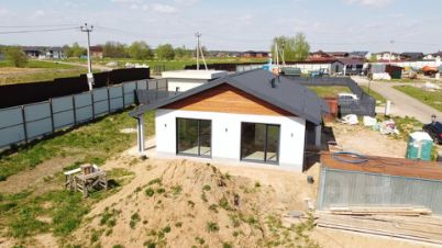 Около дома выполнена бетонная площадка для парковки автомобиля размером 9м*4мВ доме выполнена предчистовая отделка, большая зона остекления даёт ощущение большого пространства и позволяет дому быть постоянно светлым внутри.Конструктив дома, Фундамент: монолитная плита 250мм, стены: газобетон D400 толщина 400мм, крыша: двухскатная фальцевая цвет графит, внешняя отделка фасада: декоративная штукатурка CERESIT в комбинации с планкеном из натуральной лиственницы.Участок 6,5 соток, земля: сельхозназначения, разрешенное использование - под дачное строительство! Прописка- открыта. Дом зарегистрирован на Юр. лицо, льготная Ипотека-возможна. Уведомление о начале строительства, уведомление о соответствии построенного объекта и технический план здания - получены.Соседи живут в поселке постоянно. Асфальтированная дорога внутри поселка, чистка и уборка особенно в зимнее время производится ежедневно. Детские площадки, уличные тренажеры, лес, река, прогулочные зоны. Магазины поблизости.