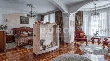 ID 460Резиденция в стиле шале в КП ''Риверсайд'' Великолепный особняк с 10-ю спальнями, общей площадью 2000 м.², расположен на видовом участке 60.3 соток и идеально подходит для самой роскошной загородной жизни в экологически чистом районе Подмосковья. Двухэтажный дом возведен по всем канонам классического шале из премиальных натуральных материалов. Архитектура дома отличается простотой и строгостью очертаний, гармонично вписывая здание в окружающий ландшафт. Светлые фасады эффектно сочетаются с тёмными оконными переплётами, играя на контрасте. Благодаря большому углу наклона крыши атмосферные осадки быстро скатываются с её поверхности. Большие окна делают дом невероятно светлым и просторным. Внутри дома выполнена превосходная отделка ''под ключ'' из высококачественных материалов. Шикарный интерьер укомплектован стильной мебелью, предметами декора и бытовой техникой. Второй свет в большой гостиной и элементы из натурального дерева переносят в потрясающую атмосферу уютного загородного дома. В собственном СПА с хаммамом и бассейном будет приятно восстанавливать силы после трудового дня. Есть бильярдная и комната для хранения вина. В санузлах установлена премиальная сантехника. Центральные коммуникации обеспечивают городской комфорт круглый год: магистральный газ, электричество, водоснабжение и канализация. Есть возможность подключить высокоскоростной интернет, телефон и ТВ.На участке отдельно построены гараж для 2-х автомобилей и беседки для душевных посиделок. Все постройки исполнены в едином стиле и одинаковой цветовой гамме. Участок рядом с речкой окружен густым лиственным лесом. На участке с ландшафтным дизайном растет множество декоративных кустарников и имеется собственное поле для мини-гольфа. Дорожки выложены тротуарной плиткой. Уличные фонари в виде шаров на невысоких ножках создают романтическую обстановку в вечернее время. Элитный коттеджный поселок ''Риверсайд'' находится в 30 минутах езды от Столицы по скоростному Новорижскому шоссе, что позволяет легко совмещать роскошную жизнь на природе с ритмом трудовых и учебных будней. Ухоженная территория посёлка занимает площадь 39 гектаров и буквально утопает в зелени. Предусмотрены детские и спортивные площадки. На берегу реки создана живописная набережная из брусчатки для неспешных прогулок, обустроены пирсы для любителей рыбалки. Прекрасная парковая зона станет Вашим любимым местом для отдыха на свежем воздухе. В нескольких минутах езды на машине доступны детские сады, школы, ТРЦ и медицинские учреждения. В непосредственной близости сосредоточены супермаркеты, рестораны, аптеки, фитнес-клуб ''World Class'', центры семейного и детского досуга.