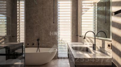 Лот: 9920425. ЭКСКЛЮЗИВ NF GROUP. Дом с мебелью 403 кв.м на участке 8.5 cот. Кол-во спален: 4. Кол-во с/у: 3. Поселок ''Усово Плюс''. Рублево-Успенское шоссе, 11 км от МКАД. Без комиссии для покупателя.В охраняемом коттеджном посёлке ''Усово Плюс'' на участке 8 .5 соток представлен образец современной архитектурной мысли — одноэтажный дом площадью 402 м². Современный и лаконичный фасад, облицованный серым мрамором, задаёт тон исключительной изысканности. Принцип чистых линий и минимализма продолжается внутри, где царит интерьер в стиле ''тихой роскоши'': каждая деталь служит гармонии, комфорту и визуальному покою. Грамотно продуманная планировка создаёт бесшовное жилое пространство, наполненное светом. Безрамное панорамное остекление стирает границу между интерьером и ландшафтом, наполняя дом солнечным светом и создавая эффект парящего объёма. Безупречное инженерное оснащение: приточно -вытяжная вентиляция с рекуператором, тёплые полы и канальное кондиционирование по всему дому создают идеальный микроклимат круглый год.Ключевым преимуществом является выдающаяся локация. Прямой выезд на платную дорогу обеспечивает стремительную связь с деловым центром — всего 20 -25 минут до Москва- Сити. При этом в радиусе 10 минут на машине доступна вся премиальная инфраструктура Рублёво-Успенского шоссе.1 этаж: центром притяжения становится уютная гостиная с уникальным камином, отделанным подсвеченным ониксом. Пространство органично включает современную кухню с собственной кладовой и выходом на террасу, кабинет для уединённой работы, три спальни и три санузла. Практичность обеспечена просторной гардеробной при входе, постирочной и гаражом на три автомобиля.Участок 8,5 соток — ухоженный, с возможностью для ландшафтных идей и личного хозяйства. Локация всего в 11 км от МКАД по Рублёво-Успенскому шоссе: сочетание уединения и удобства городской жизни.Коттеджный поселок ''Усово плюс'' расположен в 11 км от МКАД. Из Москвы можно добраться по Рублево-Успенскому шоссе. Территория посёлка огорожена, охраняется и занимает 11 гектар. В пешей доступности протекает Москва-река. Все особняки поселка подключены к центральным инженерным сетям.Коттеджный посёлок идеально подойдет людям, которые ценят приватность и тишину. На территории не расположены собственные объекты инфраструктуры, однако всё необходимое для комфортного проживания находится в 5 минутах езды на автомобиле.