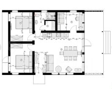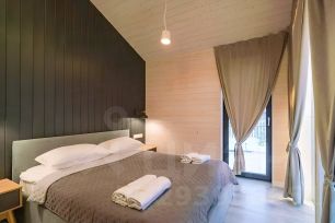 Продаём дом 2023года в стиле барнхаус с панорамными окнами в пол. Прекрасное расположение вблизи Можайского водохранилища, векового леса, грибых мест. Дизайнерский ремонт, сауна, полная комплектация, всё необходимое для жизни вплоть до мелочей, заезжай и живи! Не нужно переживать о стройке, наполнении, дом полностью под ключ. 3 комнаты (2 спальни и кабинет с двуспальным диваном), просторная кухня-гостинная, сан. Узел с душевой, небольшая сауна прямо в доме! Умный дом с удалённым управлением конвекторами, сауной, камерами, датчиком движения. Очень красивое и уютное наружное освещение дома и участка. На участке свежий газон, мангальная и костровая зоны, дорожки, парковка на 2 автомобиля, по периметру посажены молодые ёлочки. О доме: -стоит на железобетонных сваях, -внешняя отделка комбинированная: кликвальц Grandline, планкен хвоя, -утепление по всему контуру 200мм rockwool,-внутренняя отделка сухой строганой доской камерной сушки,- пластиковые окна и двери Rehau, двусторонняя ламинация,-на полу ламинат 32 класса, в мокрых зонах идроизоляция и виниловая плитка.-стены и потолки имитация бруса 120мм,-тёплый пол в санузле и под окнами, термодатчики,-отопление электрическими конвекторами,-канализация, водопровод централизованное,-установлен бойлер,-сауна в доме отделка липа,-камин на дровах (очень быстро прогревает дом),-крытая терраса из лиственницы 27м2, декоративная решётка. Техника: холодильник, плита, духовой шкаф, вытяжка, чайник, микроволновка, стиральная машина, бойлер, телевизор, роутер, 5 конвекторов, система умного дома, 2 камеры. Мебель: - в каждой спальной по двуспальной кровати с хорошим ортопедическим матрасом, шкаф, 2 тумбочки,- в кабинете: двуспальный диван, стол письменный, стул,- в кухне-гостиной: двуспальный диван, большой стол, 6 стульев, кухонный гарнитур,- в ванной: туалет с гигиеническим душем, душевая кабина со стеклянной перегородкой, зеркало с подсветкой, раковина, контурная подсветка по полу. Наполнение: вся необходимая посуда, постельное бельё, халаты, шапочки для сауны, полотенца. На террасе: набор уличной мебели, подвесное кресло-гамак, гирлянда, розетки. На улице: костровище с уличной мебелью, мангал большой, мусорный контейнер на 2 куба. На территории посёлка: детские площадки и бесплатный дом творчества, воркаут зона, благоустроенный песчаный пляж с различным прокатным оборудованием, причал. Есть дикий пляж. В лесу можно найти грибы, ягодны, виноградных улиток. Дом можно приобрести как для себя, так и под арендный бизнес тоже под ключ.