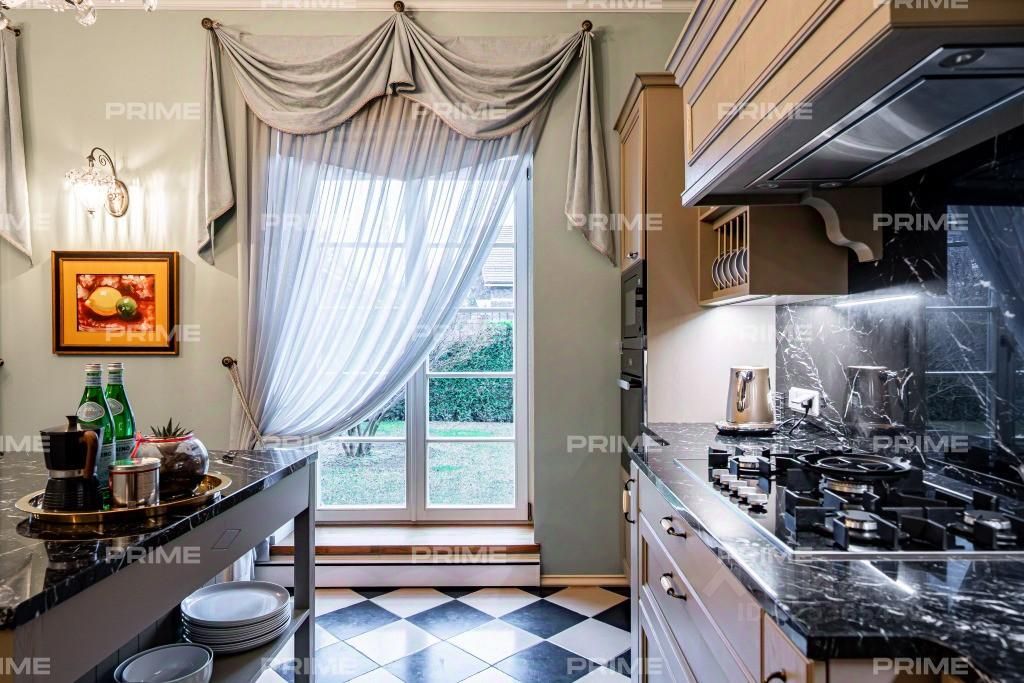 ID: 23004 Домовладение в Летовой Роще с эстетикой британской классики находится всего в 8 км по Киевскому шоссе от МКАД. Как загородная резиденция в графствах Суррей или Беркшир, дом впечатляет кирпичными фасадами, арочными окнами и аккуратными садовыми аллеями с брусчаткой и водными элементами. На участке со взрослыми деревьями расположено 820 м ''под ключ'': меблированное домовладение со всей необходимой техникой и эксклюзивной дизайнерской отделкой. Транспортная доступность и инфраструктура посёлка обеспечивают комфорт ежедневной жизни. Первый этаж встречает пространством в духе британской гостеприимности: парадная гостиная с двойной высотой и симметричной компоновкой, акцентирована люстрами и светильниками Schonbek. Камин XVI-XVII века, привезённый специально, стал сердцем гостиной и символом преемственности эпох. Здесь - текстуры глубоких тонов, натуральное дерево и уравновешенные композиции мебели Ralph Lauren, поддержанные библиотекой в классическом исполнении. В зоне приема - столовая и кухня Century: длинный стол для торжественных ужинов, витрины и современная кухня с чёрным мрамором и характерной шахматной плиткой пола - как дань английским таунхаусам. Для отделки использовались кирпич и полы из Бельгии: кирпич XVIII-XIX века ручной формовки, использовавшийся в строительстве усадеб, конюшен и церквей, отличается высокой прочностью и исторической фактурой. Полы выполнены из старых дубовых досок массива возрастом около 100 лет, что делает интерьер более роскошным и статусным, наполняя его тёплой и уютной атмосферой. Кабинет и домашний кинотеатр оформлены Baxter - статусный уют, кожа и мягкие линии. Входная зона с тёмно-синими дверями, круглым пуфом и большим зеркалом настраивает на респектабельный тон. На уровне - зимний сад и терраса для неспешного чая, предусмотрены санузлы и отдельная квартира для персонала. Вас встречает второй этаж, на котором приватные пространства выдержаны в светлых, спокойных тонах - как в лучших британских резиденциях. Четыре спальни оформлены мебелью Baker и Century: текстиль с флоральными мотивами, классические комоды, изголовья с мягкой обивкой и хрустальные акценты освещения. Семь санузлов в доме создают безупречную логику комфорта: здесь есть залы с мраморными стенами, двойными раковинами, орнаментальным полом и декоративными зеркалами, отдельные комнаты с душевыми и ванной, элементы чёрно-белой плитки - всё в духе изящной классики. В спальнях - продуманная медиазона с ТВ, рабочими столами и гардеробными. Просторный участок с крупными деревьями продолжает архитектурную идею дома: аккуратно подстриженные живые изгороди, цветники, мощёные дорожки и водные элементы создают атмосферу ухоженного английского сада. Пруд органично вписан в композицию - он добавляет глубину пространству, отражает зелень и служит спокойным визуальным акцентом. Здесь можно устроить барбекю в тени деревьев, собраться с друзьями в беседке или просто наслаждаться видом на ландшафтные композиции с террасы. Помимо основного дома, на участке расположены банный домик с комнатой отдыха и отдельное строение с кухонной зоной, что делает территорию полностью готовой для комфортного загородного образа жизни. Посёлок Летова Роща - охраняемая территория с продуманной инфраструктурой: въездная группа, внутренние дороги, сервисы и близость 