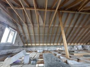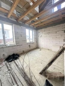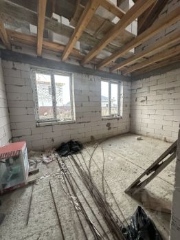 Дом - 2 этажа,, высота потолков обоих этажей 2,70 ,стены из газосиликатных блоков BONOLIT прочностью (D500), крыша выполнена из металлочерепицы ,потолок второго этажа утеплён минеральной ватой толщиной 200 мм, фундамент монолитная ж/б плита, перегородки комнат из газосиликатного блока, лестница из монолитного ж/б, окна ПВХ ( профиль 72 мм с наружной ламинацией цвета), входная дверь металлическая .Участок огорожен . Стены -обои.Электропроводка разведена. На первом этаже подключена система ''тёплый пол'', плюс - батареи отопления во всех помещениях, коммуникации заведены в дом (электричество 15 кВт, вода, канализация системы Топаз).Вода - своя скважина глубиной 38 м. Два санузла. Участок и дом, поставлены на кадастровый учет.Постоянная регистрация.
