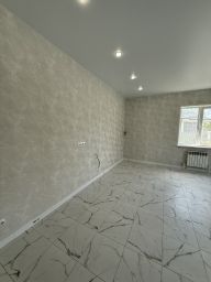 Продается одноэтажный дом 90 м2 под постоянное проживание! Земля ИЖС 6 соток. ПОДХОДИТ ПОД СЕМЕЙНУЮ ИПОТЕКУ! Дом продается от застройщика, продажа от юридического лица.3 спальни, кухня гостиная, с/у совместный, котельная.Дом продается с отделкой. Заезжай и живи!Коммуникации: газ (отопление дома от газа), автономная канализация - септик, скважина, свет. Дом на этапе внутренних работ. Срок готовности 1 месяц. В доступности вся городская инфраструктура: Школы, детские сады, сетевые магазины.До города 10 минут на транспорте. В шаговой доступности автобусная остановка.