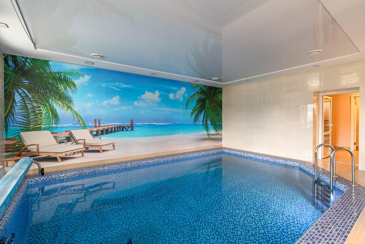 Дом под ключ с бассейном 420 кв м на участке 12 соток в строго-охраняемом коттеджном поселке ''Есенино''. Поселок расположен в 14 км от МКАД по Киевскому шоссе, Калужскому шоссе. Новая Москва. Прописка. Современный кирпичный дом в европейском стиле с дорогой и качественной внешней и внутренней отделкой. Фундамент - монолитный усиленный, перекрытия монолитные, кровля мягкая черепица двухслойная производства Канады, окна - 3-х камерные деревянные, стеклопакеты со сверхпрочными стеклами производства Германии. Наружная отделка - натуральный дагестанский камень. Лестница - монолитная, покрыта мрамором производства Испании, полы - натуральный камень Травертин, паркет из ценных пород дерева, стены - штукатурка и эксклюзивный декор из натурального кедра, подоконники - мрамор, потолки отделаны кедром, двери - массив дуба, отделка санузлов - травертин, столешницы раковин мрамор. Высота потолков около 4 м! Все коммуникации центральные, отопление газовый котел Buderus. В доме бассейн с противотоком, с инновационной системой очистки без хлора, сауна инфракрасная из кедра, гараж на 3 машины, квартира для персонала, винный погреб, две просторные террасы с панорамным видом на лес и окрестности. Планировка: Первый этаж: холл, бассейн, сауна, душевая, санузел, квартира для персонала, гараж, котельная. Второй этаж: холл, хозяйская спальня с санузлом и гардеробной, гостиная, кухня-столовая с выходом на террасу, кабинет (спальня), гостевая спальня, санузел, кладовая. Третий этаж: гостиная (спальня) с выходом на террасу, санузел. Возможна установка камина. Подвальное помещение: комната свободного назначения (винный погреб). Участок 12 соток правильной формы расположен на возвышении. На участке: декоративные и фруктовые деревьями и кустарниками, малиновый сад и огород. Сделан дренаж, система автополива. Охраняемый коттеджный поселок с пропускной системой и видеонаблюдением. В поселке - детские и спортивные площадки. Рядом лес, река, пруд с прогулочной зоной, лесопарк. В пешей доступности супермаркеты Вкусвилл и Пятерочка. Инфраструктура п.Марьино и Московский: школы, детские сады, торговые центры, поликлиники. Недалеко усадьба Валуево (санаторий), спортивный комплекс Теннис.ру, школа для одаренных детей Летово. Транспортная доступность: автобусы, маршрутка о Метро Теплый стан иФилатовл Луг, Саларьево, действует новая скоростная трасса Марьино-Саларьево, строится метро.