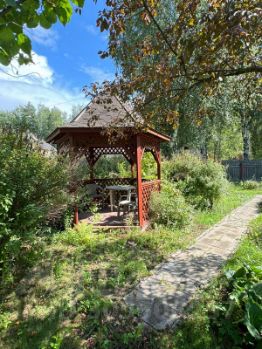 В прекрасном тихом месте ближнего Подмосковья, на ухоженном участке с фруктовым садом 15,3 соток, в пятиминутном выезде на Егорьевское шоссе продаётся деревянный ДОМ с жилым мансардным этажом, а также деревянная БАНЯ, ХОЗБЛОК, БЕСЕДКА и кирпичный ГАРАЖ. Площадь дома 68 кв. м по БТИ (фактическая площадь 75 кв. м.) Год постройки 2007. В дом проведён магистральный газ, можно жить круглогодично. Отопление помещений осуществляется с помощью газового котла. Также имеются, облицованные плиткой, кирпичные дровяные печи, сложенные ещё до подключения к магистральному газу. Печи находятся в отличном состоянии. Фундамент дома ленточный, железобетонные перекрытия по первому этажу. Перекрытия второго этажа деревянные. Стены дома изготовлены из щитовых панелей, дополнительно утеплены и обиты окрашенной вагонкой. Окна герметичные, пластиковые, с сетками от комаров. Планировка дома весьма удобная: на первом этаже расположены прихожая, кухня, совмещённый санузел с тёплым полом и две изолированные комнаты. В комнатах первого этажа светлые обои и мебель в прованском стиле. Две комнаты второго этажа обиты вагонкой с красивыми декоративными люстрами. Вблизи дома имеется деревянная БАНЯ 21 кв. м. с комнатой отдыха, кирпичным камином, теплым полом, душевой и парилкой, отделанной липовой доской. Парилка отапливается металлической дровяной печкой. На участке также имеются кирпичный ГАРАЖ 18 кв. м. и деревянный ХОЗБЛОК 6 кв. м. В глубине сада стоит уютная деревянная БЕСЕДКА. Строения на участке: ДОМ, БАНЯ и ГАРАЖ электрифицированы.Вода подаётся в ДОМ и БАНЮ из индивидуальной глубоководной скважины, устроенной в 2022году. Канализация в ДОМЕ и в БАНЕ центральная, городская (не септик!) Участок с дизайнерским благоустройством: пруды с водопадами, мостиком БЕСЕДКОЙ и фруктовым садом. Подъезд к дому заасфальтирован, выезд с улицы Центральная сразу на Егорьевское шоссе, а также 10 минут до ж/д станции Хрипань. На участке и на доме нет обременений. Земля и дом оформлены в собственность. Один взрослый собственник.