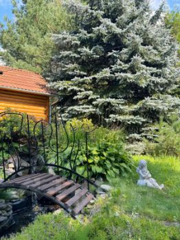 Продается домовладение в окружении векового леса (участок примыкает к лесу и имеется калитка с выходом в лес) на уникальном ландшафтном и лесном участке 34 сотки. Удобная планировка всего домовладения, состоящего из основного дома из кирпича 630,2 кв.м. с бассейном, отдельно стоящей дровяной баней и беседкой-барбекю, что позволит с комфортом разместиться большой семье. Основной дом - 3 этажа + цокольный этаж. 1-й этаж: прихожая, холл, гостиная с камином, кухня-столовая, санузел, спальная комната (кабинет).2-й этаж: три спальни, санузел, гардеробная, холл.3-й этаж: большое помещение свободной планировки, которое можно использовать как игровую комнату, спортзал, бильярдную или спальные комнаты, гардеробная.Цокольный этаж: холл, кухня, санузел, постирочная, полноценный бассейн, бойлерная, техническое помещение с коммуникациями, комната отдыха, кладовое помещение. Домовладение продается с мебелью, бытовой техникой и внутренним оснащением. Сам участок с ландшафтным дизайном, сочетанием разных пород хвойных, лиственных и плодовых деревьев, кустарников, цветов, живых изгородей создают атмосферу полноценного отдыха и наполняют природной энергией и здоровьем. Садовые дорожки из натурального камня, дренаж по всему участку и вокруг дома, площадка для автомобиля.Комфорт проживания и надежность обеспечены продуманной дорогой инженерной системой и коммуникациями - система водоочистки, газовая система отопления, система дренажа. Всё на высоком уровне надежности с запасом мощности систем.Газ, электричество, водоснабжение центральные + собственная скважина . Рядом Храм, лес, магазины, рынок, горнолыжный спуск, водоем и т.д. Документы готовы к продаже. Более 13-ти лет в собственности. Свободная продажа. Подходит под ипотеку - документы в прядке.