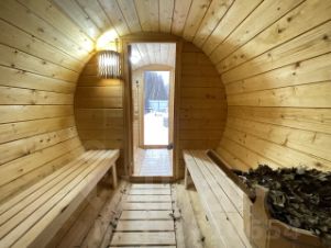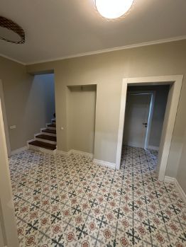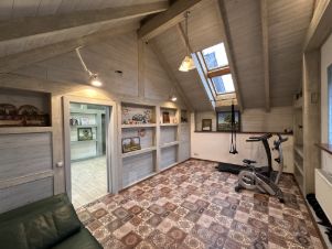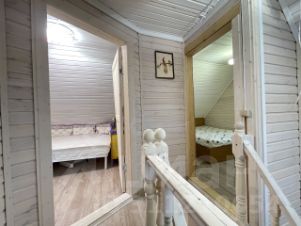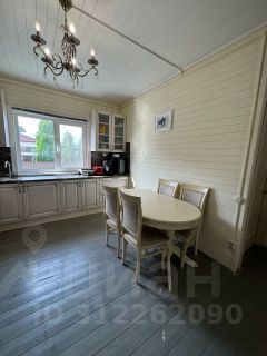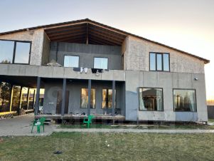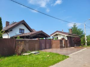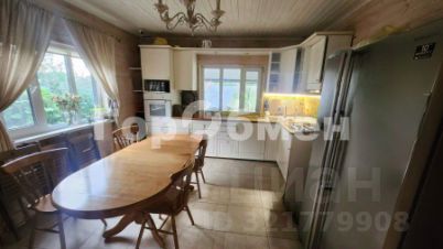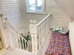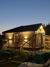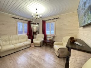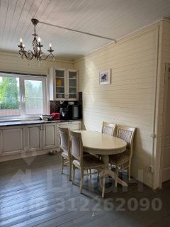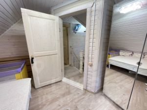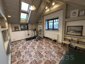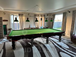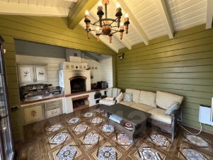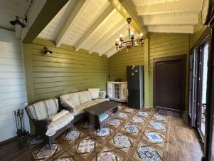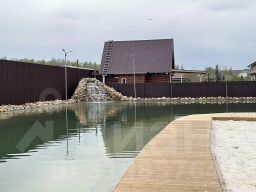 Дом построен из соснового бревна и гармонично вписан в натуральный ландшафт у спокойной реки с благоустроенной набережной. Тёплый золотистый оттенок сосны сочетается с каменной отмосткой и мощёной площадкой у входа. Просторная летняя веранда под прозрачным навесом плавно переходит в крытый бассейн, где можно отдыхать в любую погоду. На участке вокруг дома — берёзовая роща, декоративный пруд, аккуратный газон и мощёные дорожки, ведущие к детской площадке и футбольному полю на берегу реки.Интерьер— Натуральное дерево во всём: стены, потолочные балки и лестница выполнены из соснового бревна — тепло, уютно и экологично.— Кухня-гостиная: просторная зона с каменным полом в геометрический орнамент, обеденный стол из тёмного массива и люстра в средневековом стиле со вставками из цветного стекла. Большие окна и светлые шторы создают ощущение простора и наполняют комнату мягким дневным светом.— Каминная группа: уголок у камина облицован природным камнем и украшен рустикальными полками, здесь же установлен большой телевизор и встроенные полки для акустики — идеальное место для семейных вечеров.— Лестничный холл: кованые перила, бра в стиле факелов и живые растения вдоль ступеней делают подъём на мансарду живым и интересным.— Спальные зоны (мансарда): пять спален и детская комната отделаны светлыми берёзовыми панелями и дополнены кондиционерами, каждая оформлена в спокойных натуральных тонах с акцентом на текстиль и мягкое освещение.— Цокольный этаж: здесь разместились караоке-зал - кинотеатр и складские помещения для инвентаря и декора.Такой дом из соснового бревна сочетает в себе домашний уют и рустикальную элегантность, продуманные зоны отдыха и развлечений, а также близость к воде и природным уголкам для прогулок.Номер лота: 9565
