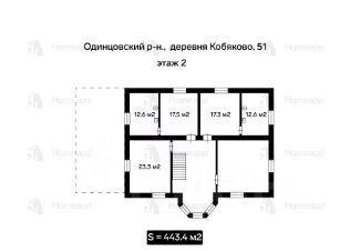 Номер лота: 89056. К продаже предлагается кирпичный двухэтажный дом общей площадью 443,4 кв. м в Одинцовском городском округе Московской области. Планировочное решение: на первом этаже предусмотрены гостевой санузел, просторный зал, столовая, кухня и спальня с гардеробной комнатой. На втором этаже находятся четыре просторные спальни, две из которых со своими санузлами. На цокольном этаже расположен хозблок и все коммуникации. Дополнительно оборудован подземный гараж на 2 машиноместа.Инфраструктура:Дом расположен в экологически чистом районе. В 10 минутах езды на машине находится город Звенигород. Там развита вся необходимая инфраструктура: школы, детские сады, поликлиники, магазины и разные кофейни. Удобные выезды на ЦКАД и Новорижское шоссе. Документы:Один взрослый собственник, быстрый выход на сделку! Юридическое страхование сделки!